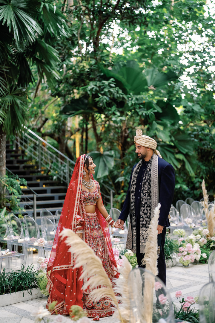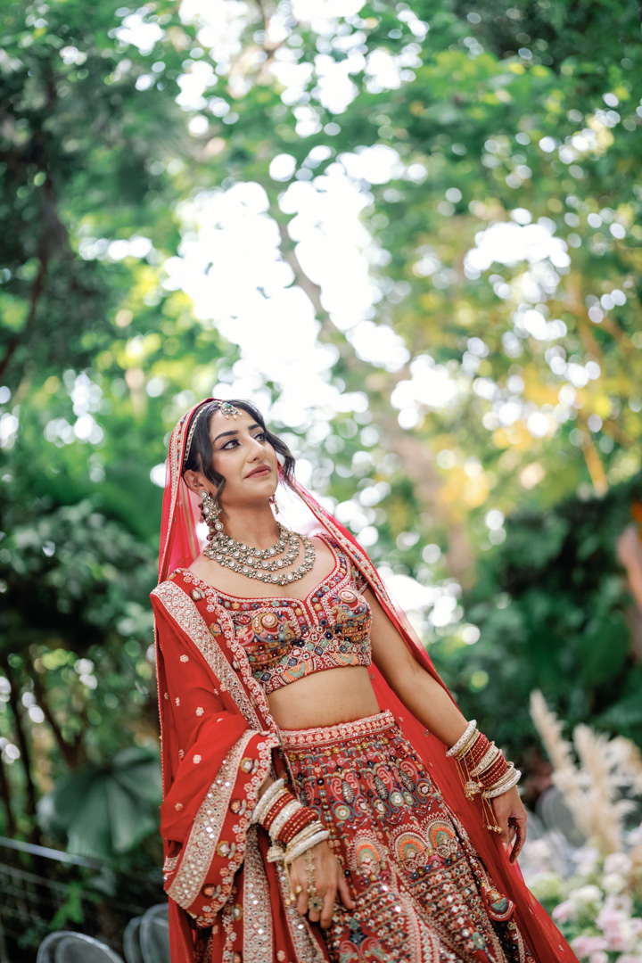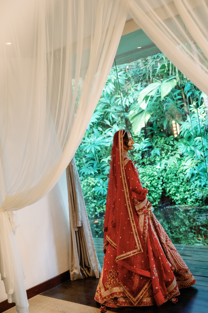 Ishita’s vision was clear: a wedding filled with traditional Indian elements yet beautifully infused with Bali’s tropical charm. Her bridal attire showcased rich red and gold tones, while Ben complemented her with classic Indian groom attire. The mandap was adorned with marigolds, tropical florals, and soft drapery an ideal setting for any Bali Photographer, especially our team at Gusde Photography, to capture luxury destination wedding moments