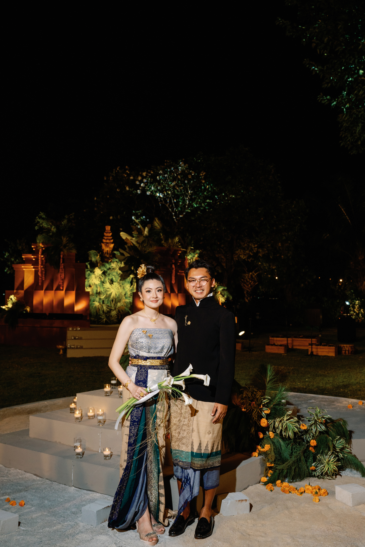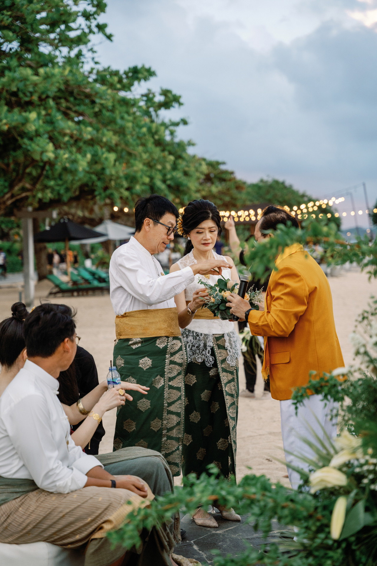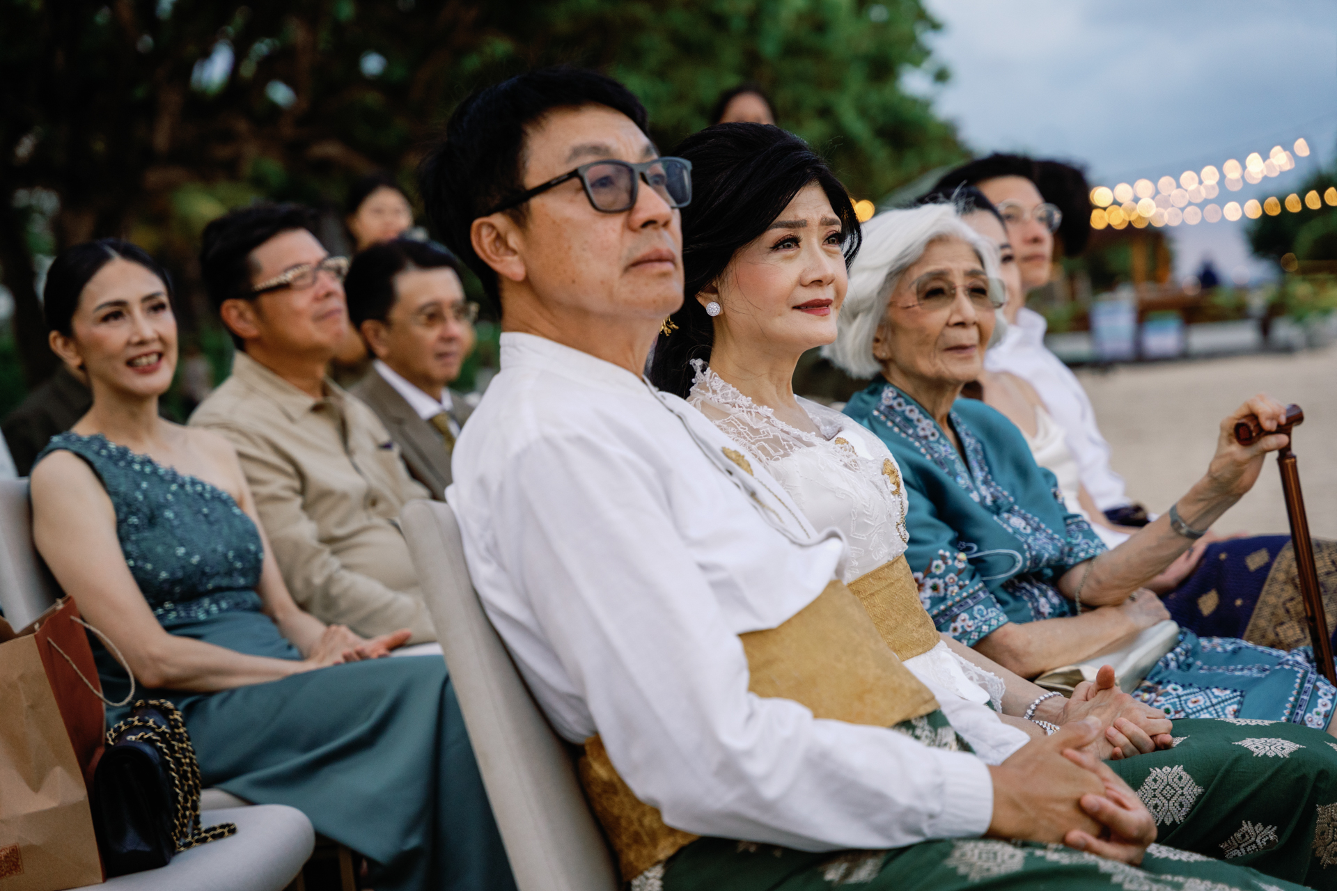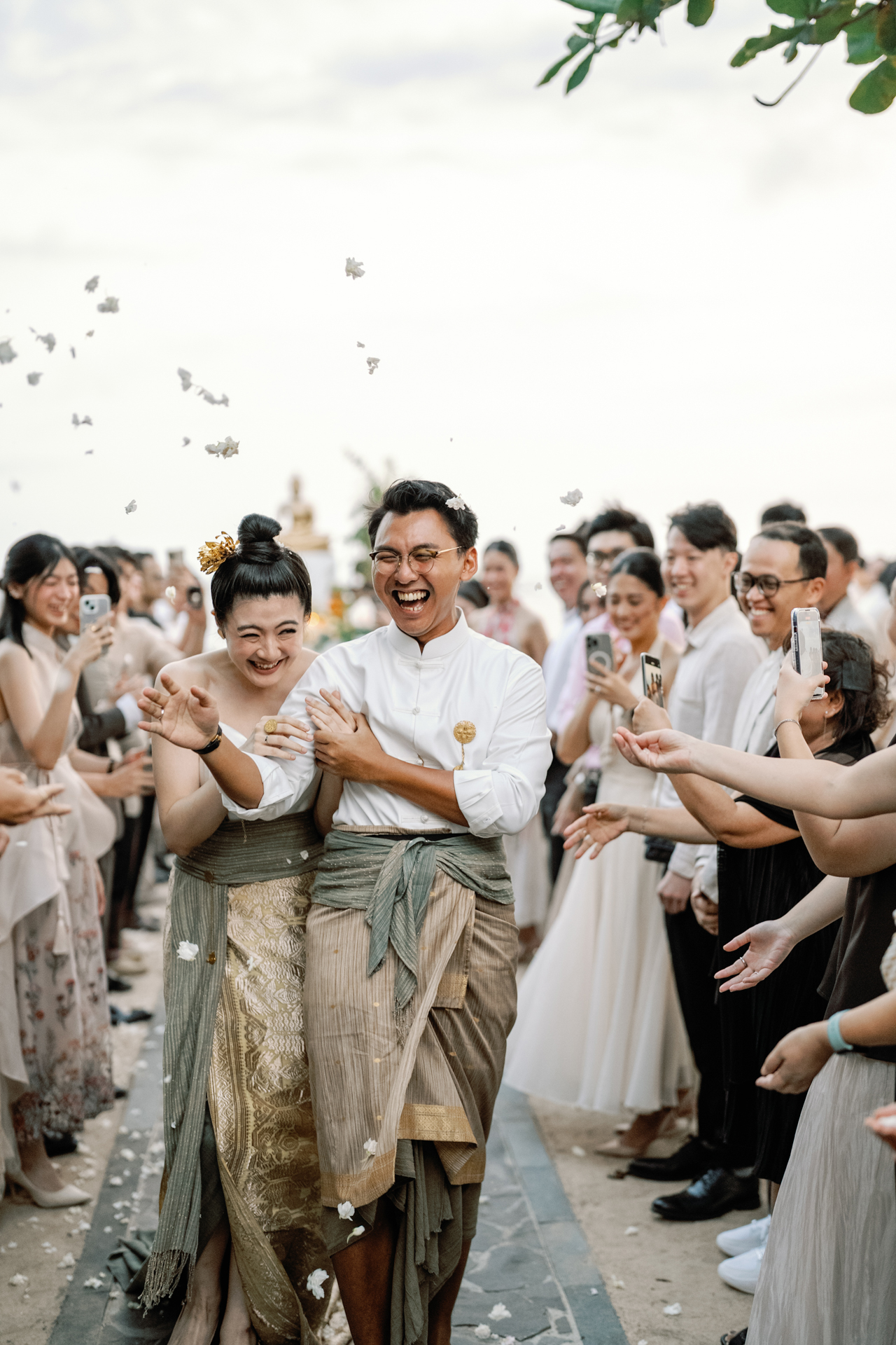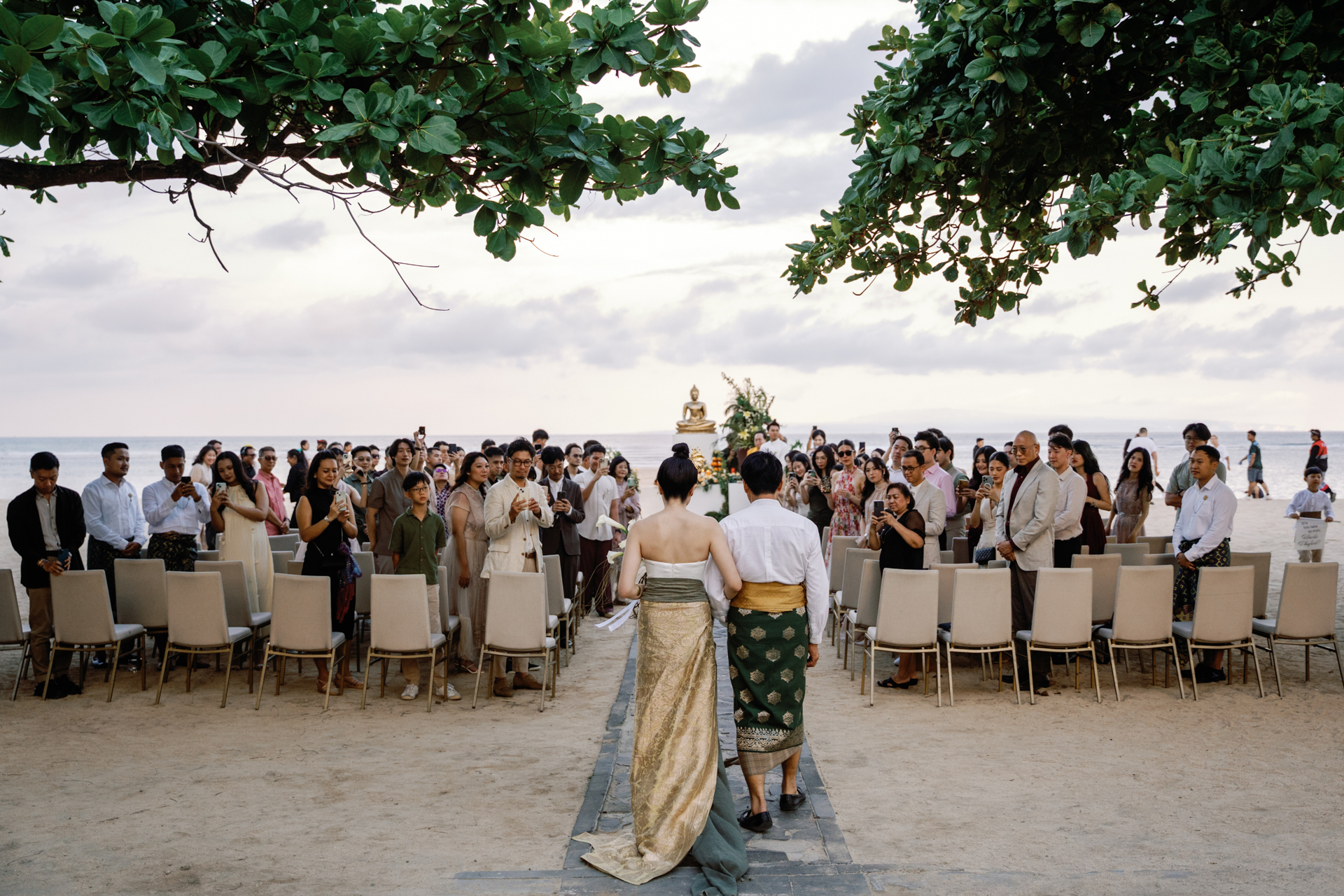 Their union was marked by a deeply symbolic Buddhist wedding ceremony, where every ritual was performed with intention and mindfulness. Guided by a monk and witnessed by their closest family and friends, the ceremony unfolded with offerings, prayers, and quiet moments of reflection. With the ocean just steps away, the natural rhythm of the beachfront setting soft sea air, open skies, and surrounding greenery the sense of peace throughout the ceremony.