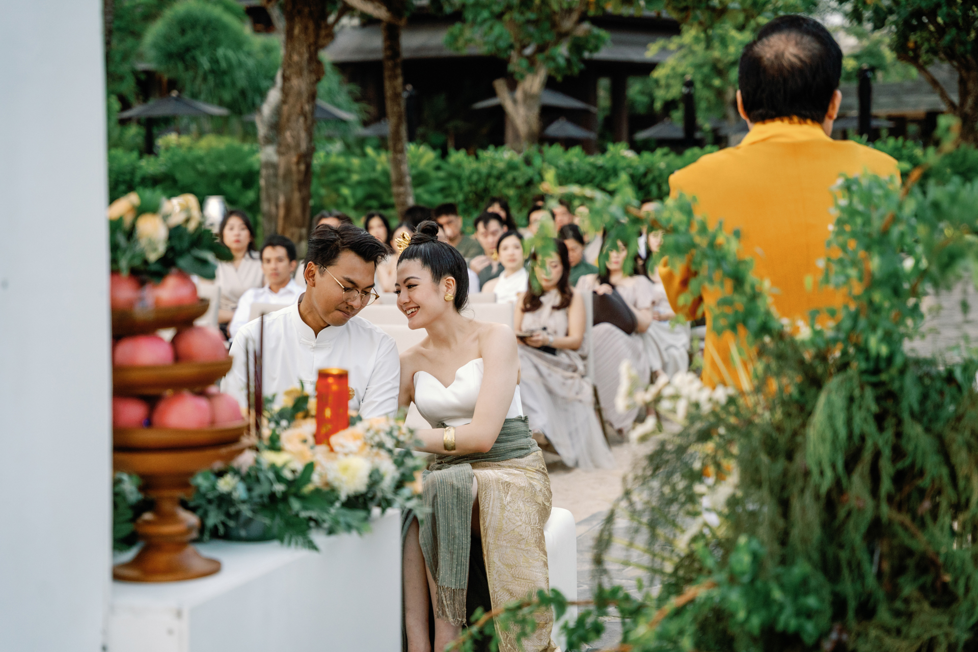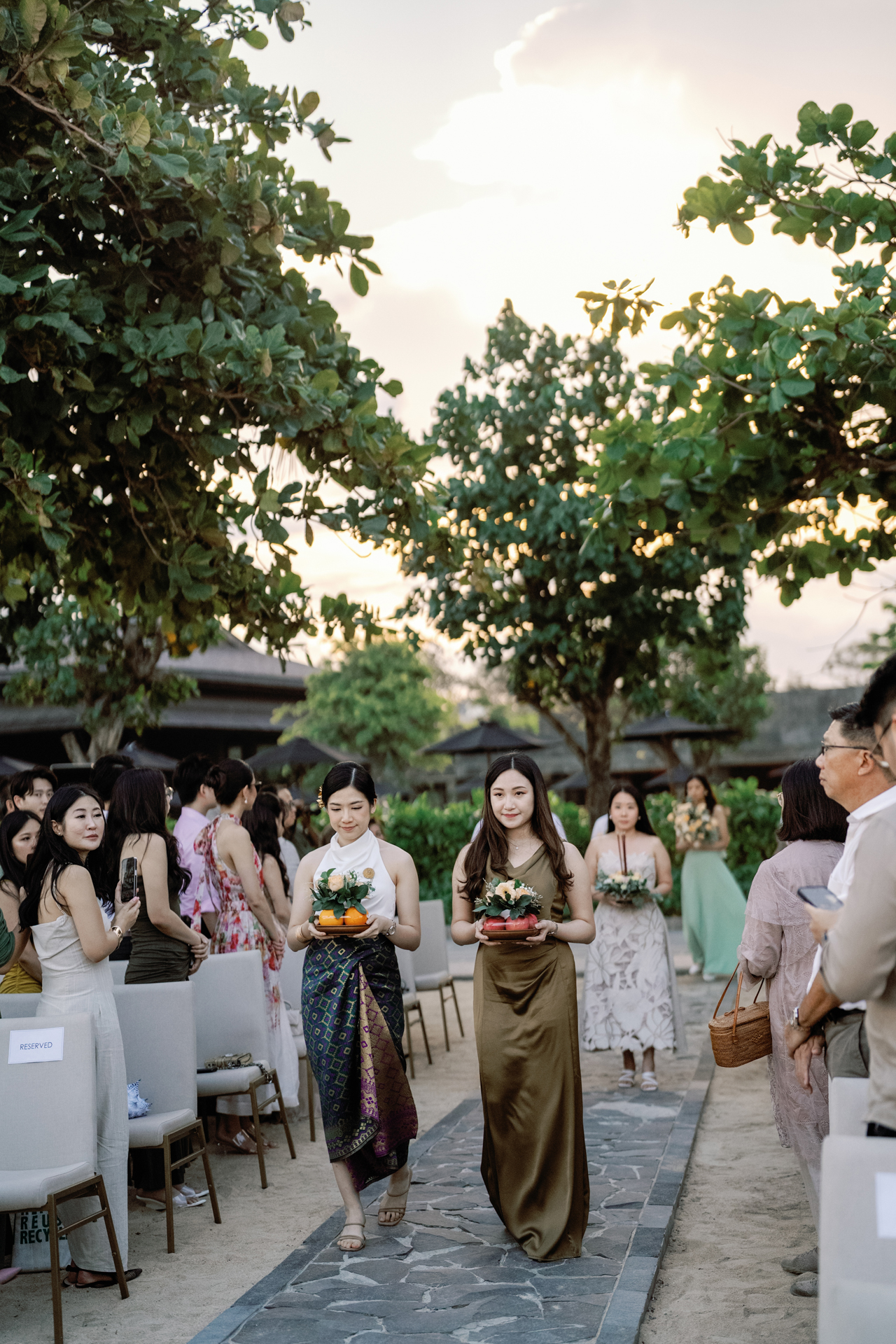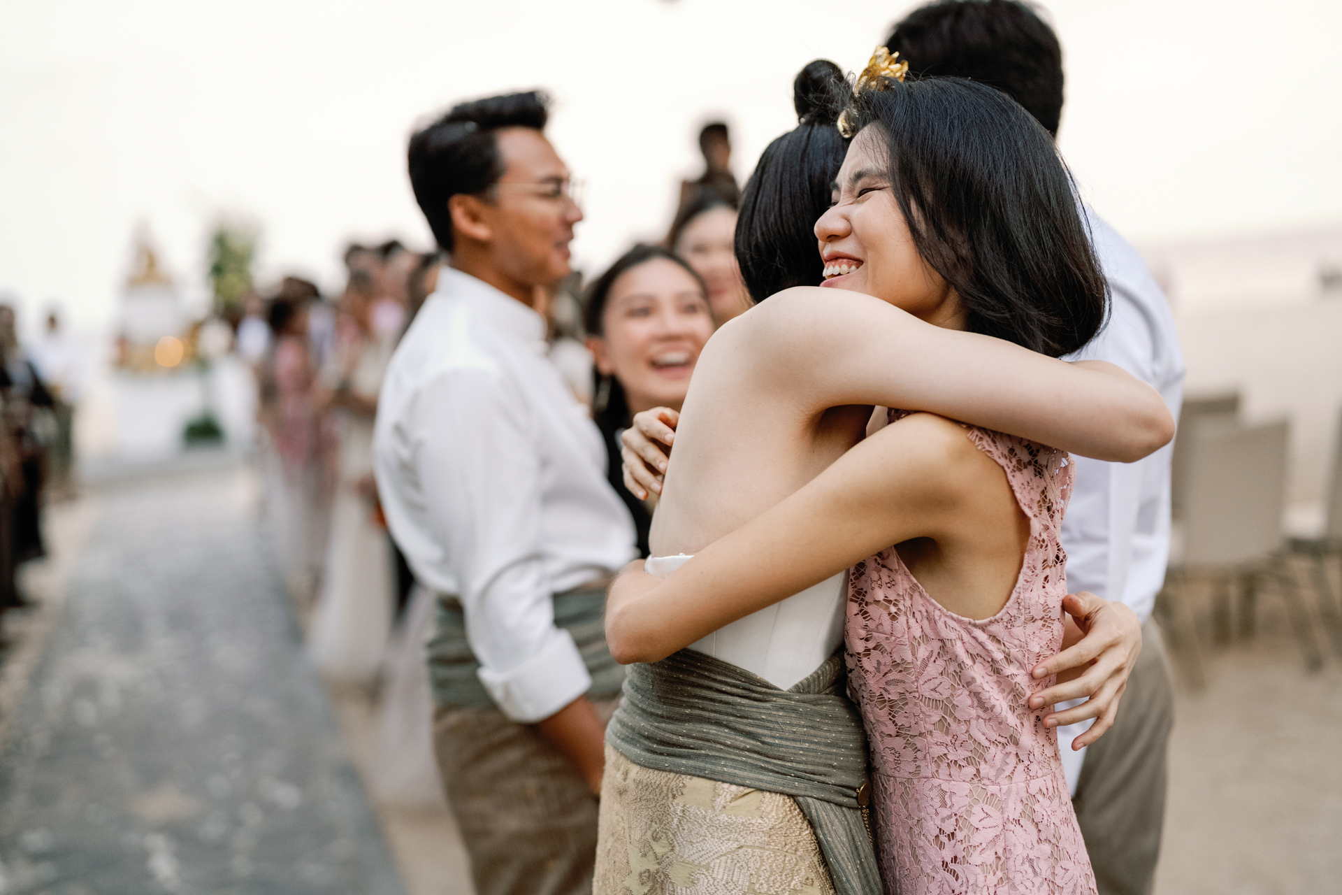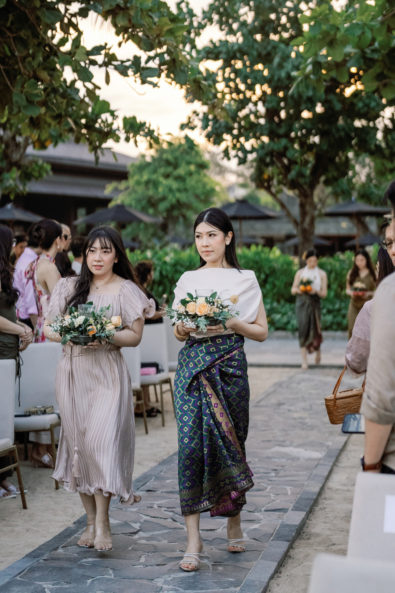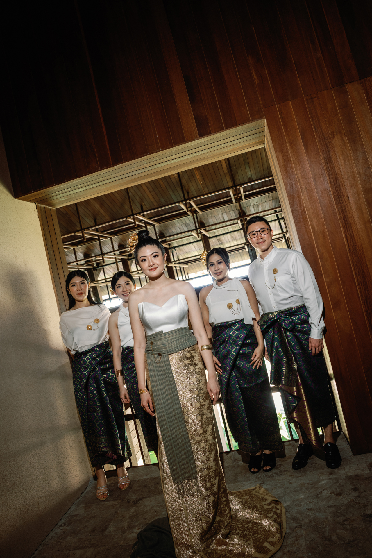 Their union was marked by a deeply symbolic Buddhist wedding ceremony, where every ritual was performed with intention and mindfulness. Guided by a monk and witnessed by their closest family and friends, the ceremony unfolded with offerings, prayers, and quiet moments of reflection. With the ocean just steps away, the natural rhythm of the beachfront setting soft sea air, open skies, and surrounding greenery the sense of peace throughout the ceremony.