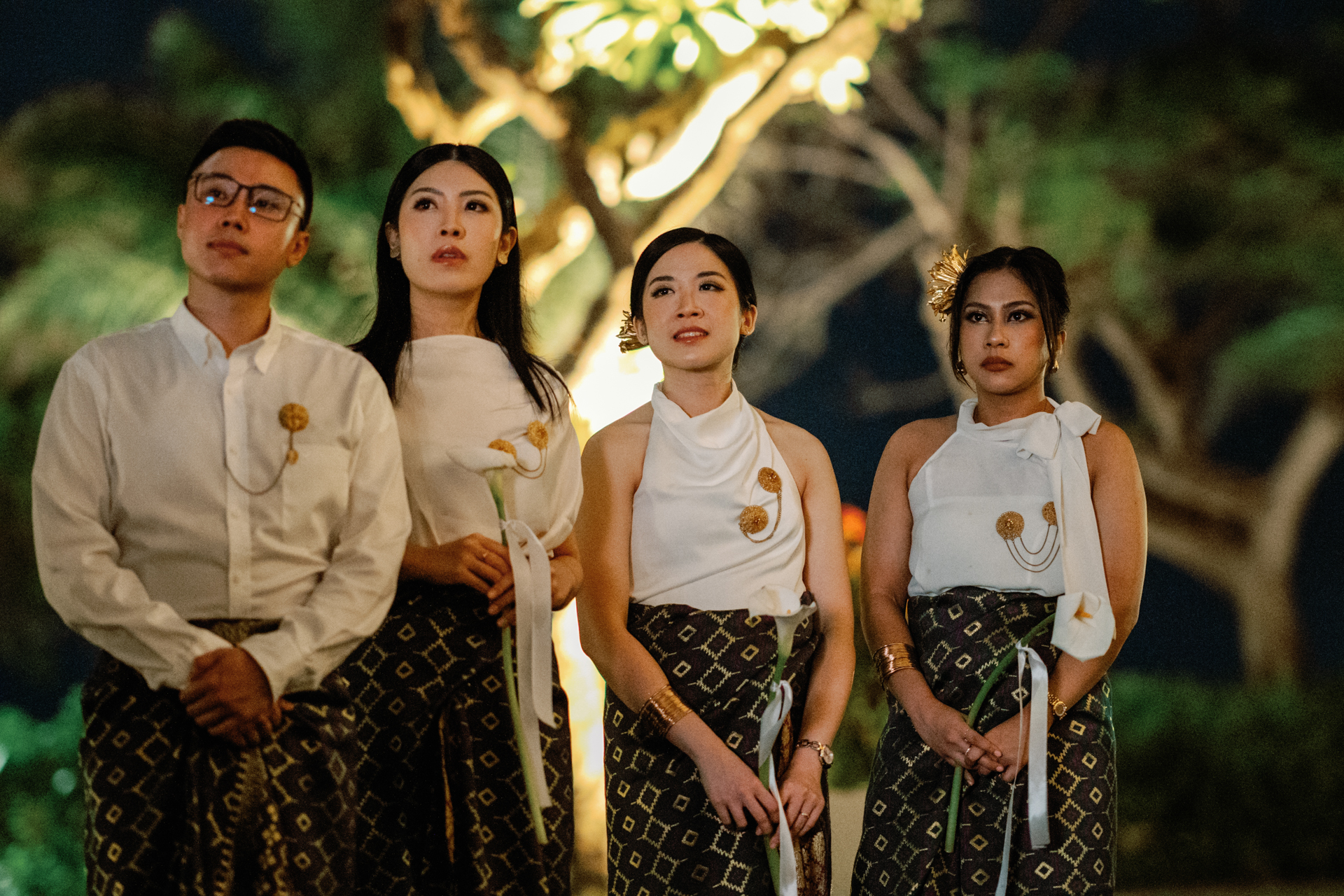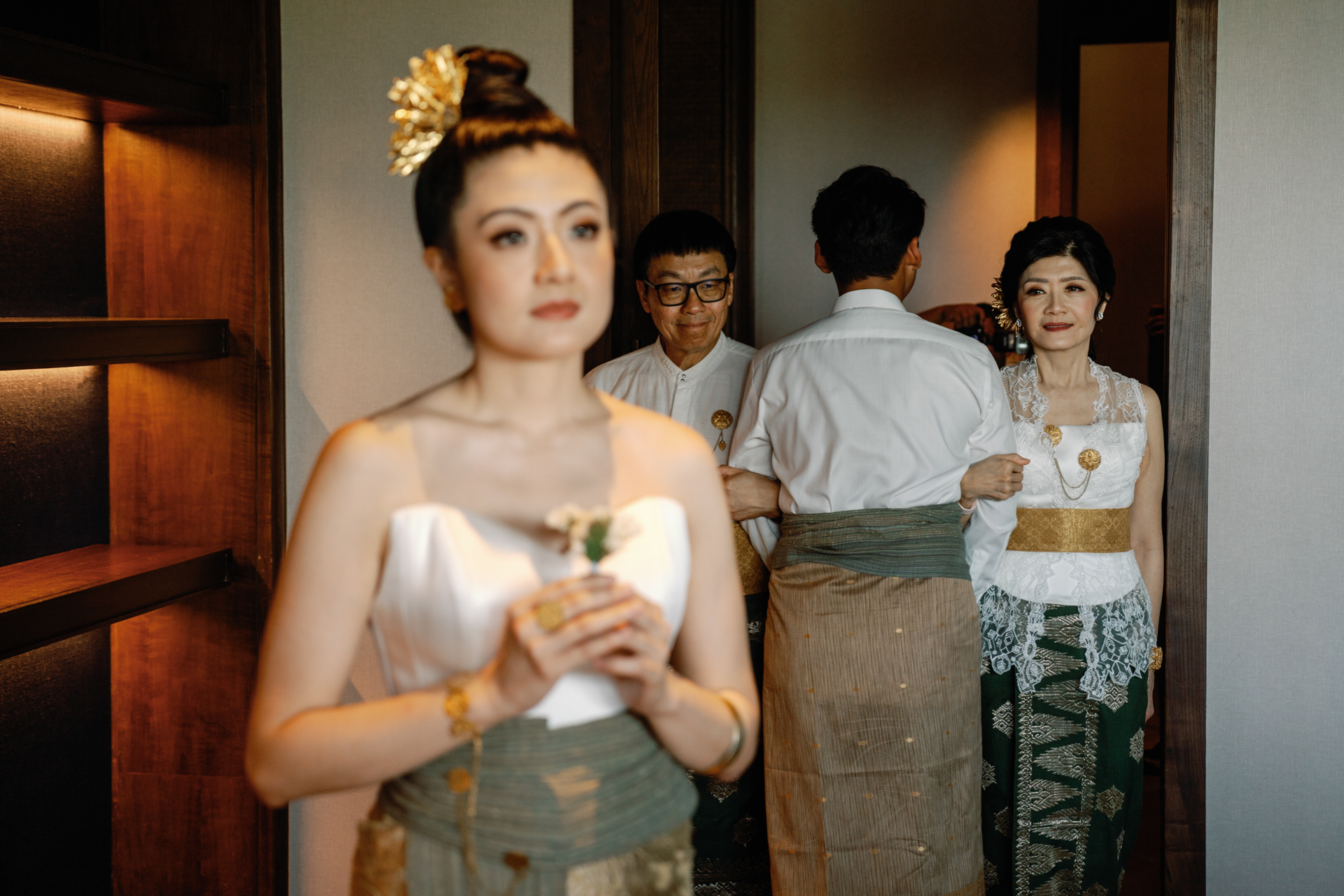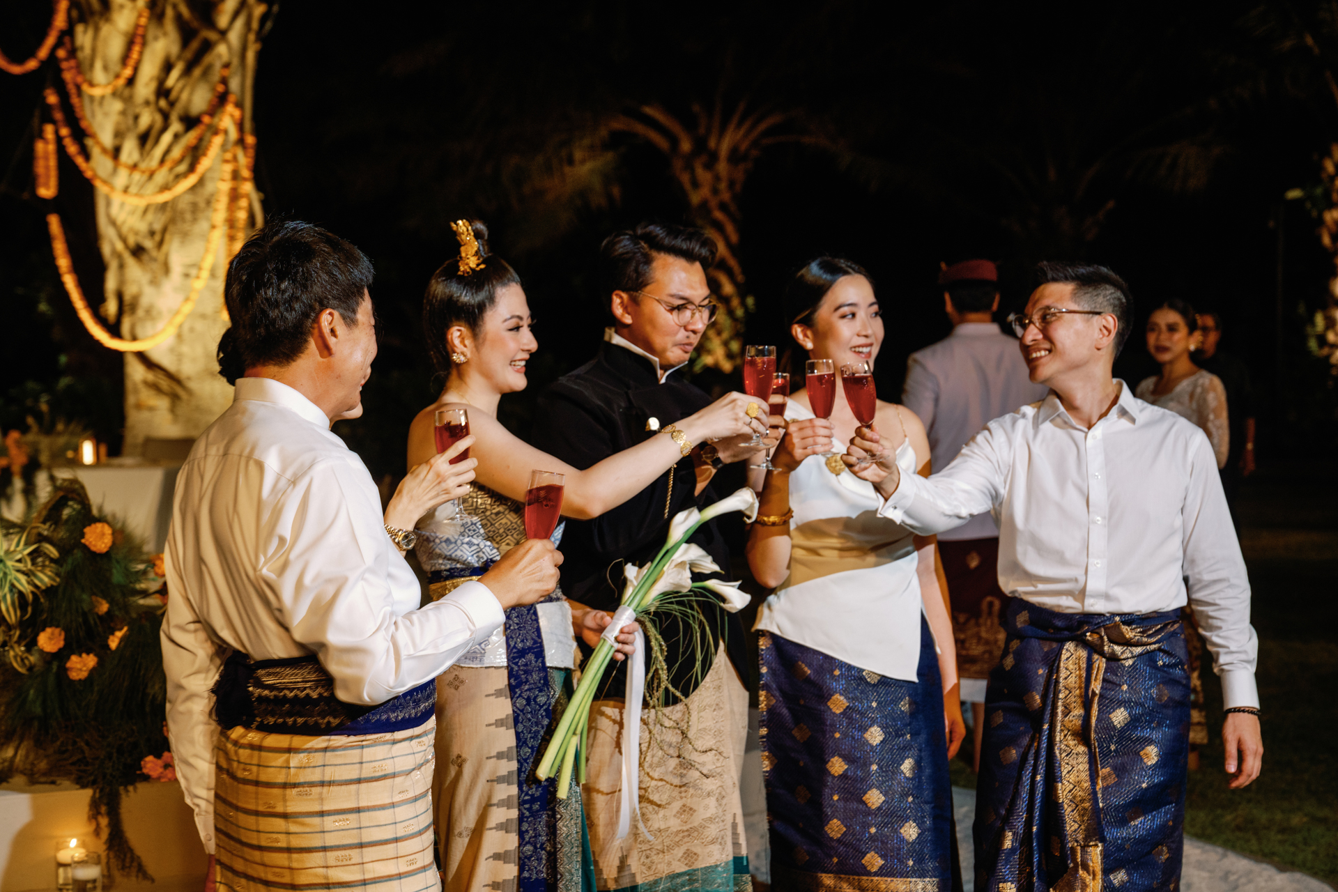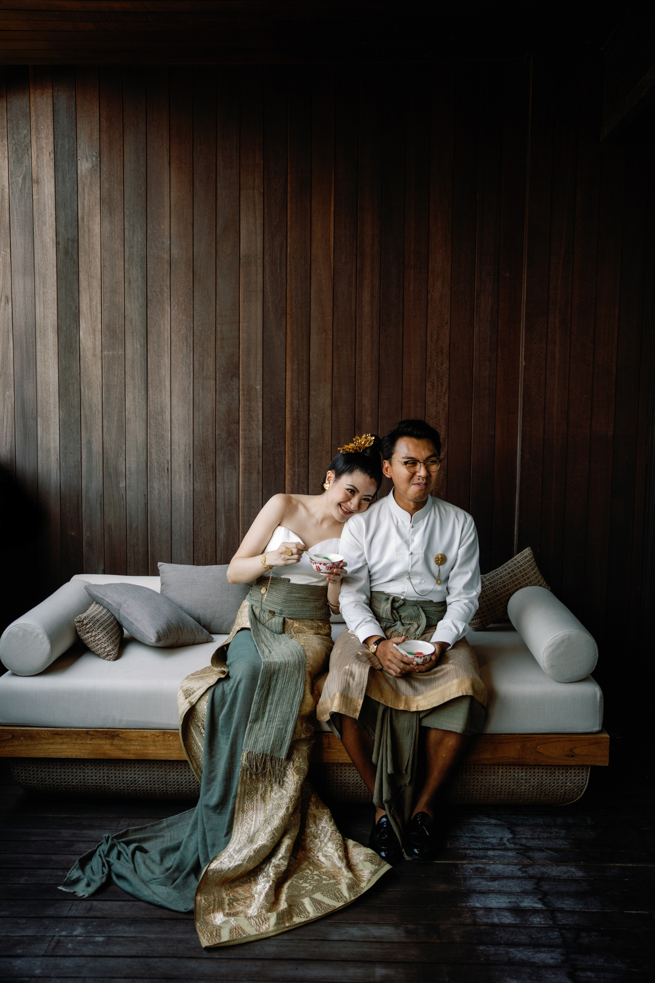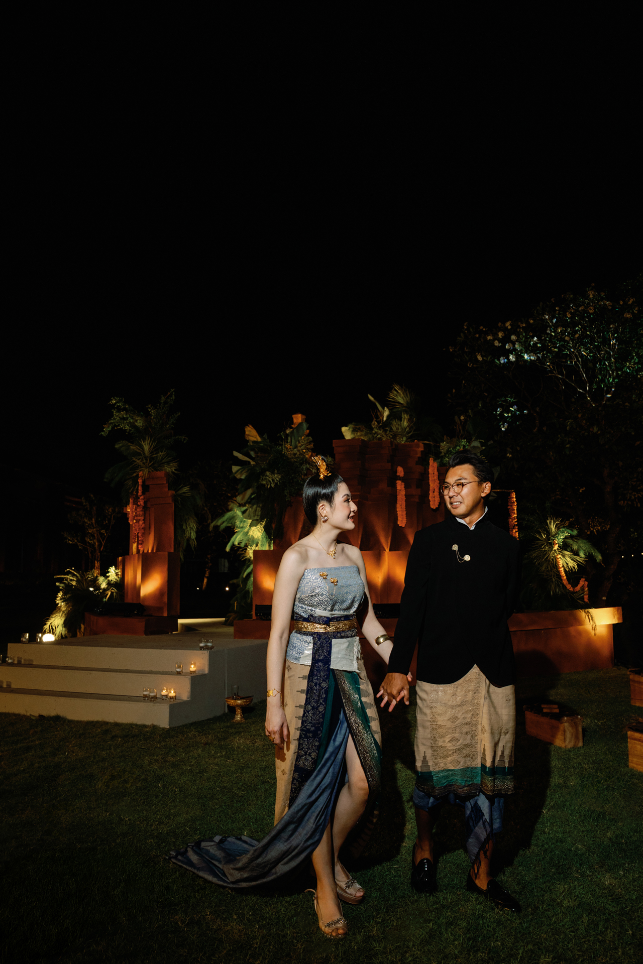 Their union was marked by a deeply symbolic Buddhist wedding ceremony, where every ritual was performed with intention and mindfulness. Guided by a monk and witnessed by their closest family and friends, the ceremony unfolded with offerings, prayers, and quiet moments of reflection. With the ocean just steps away, the natural rhythm of the beachfront setting soft sea air, open skies, and surrounding greenery the sense of peace throughout the ceremony.