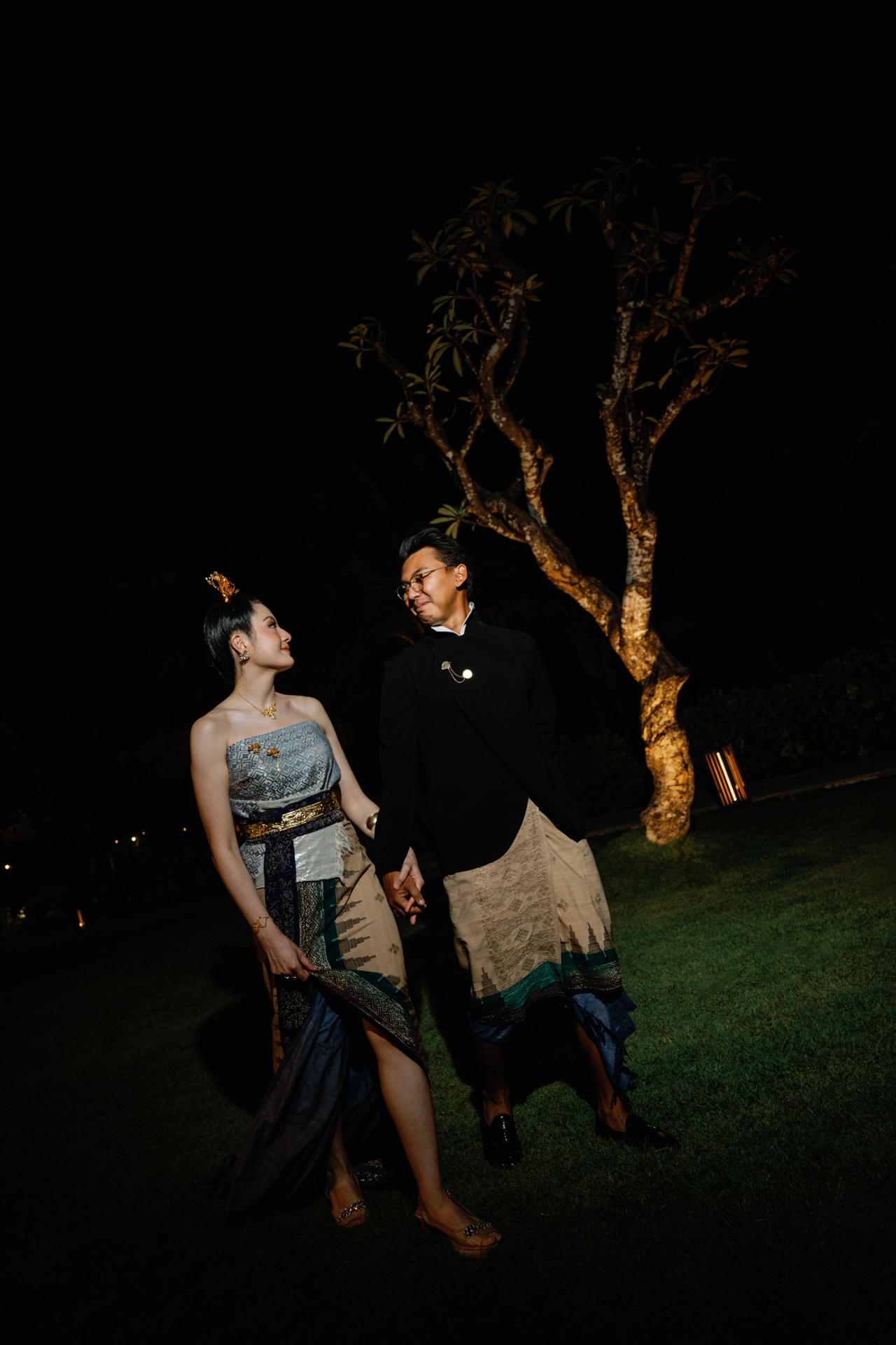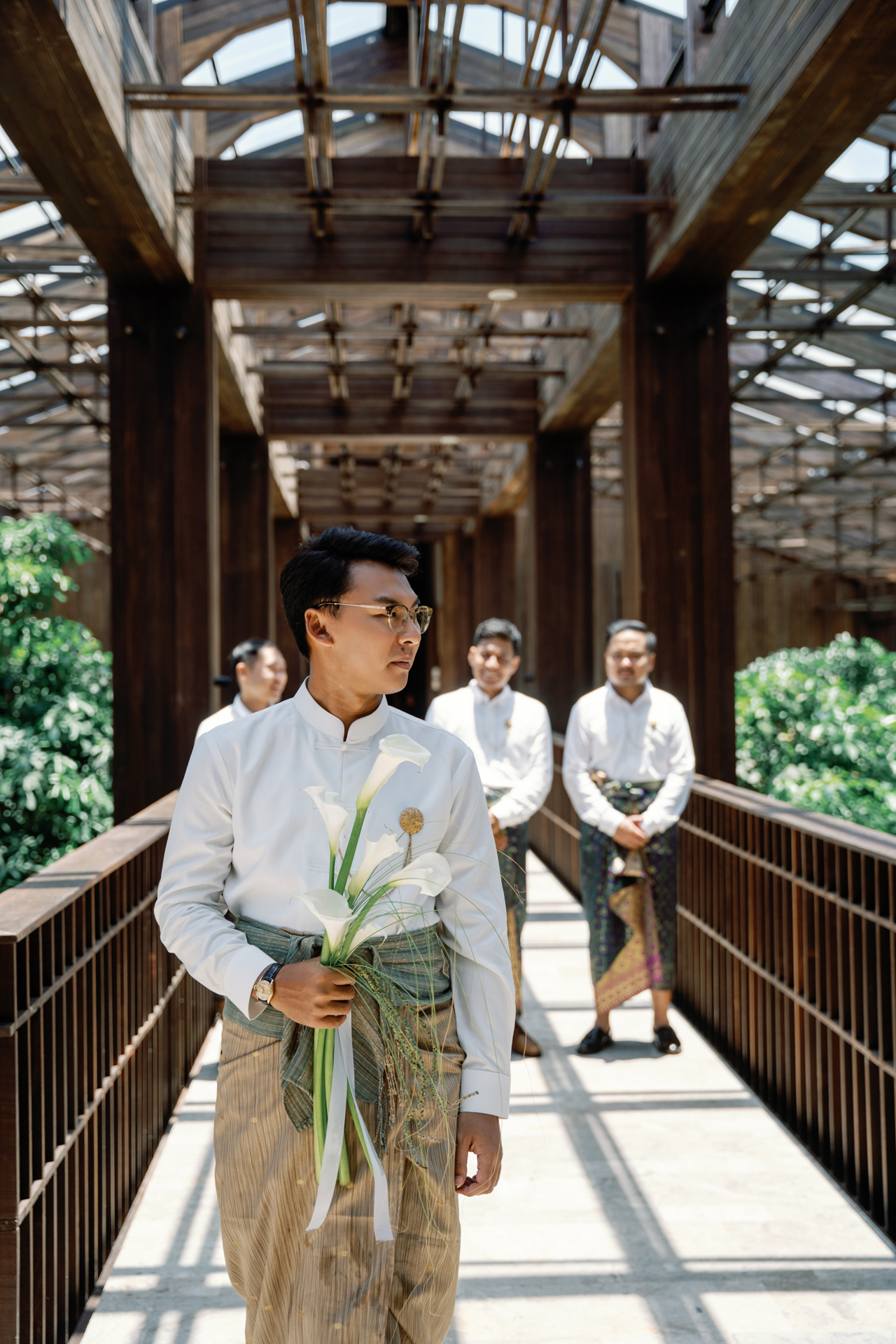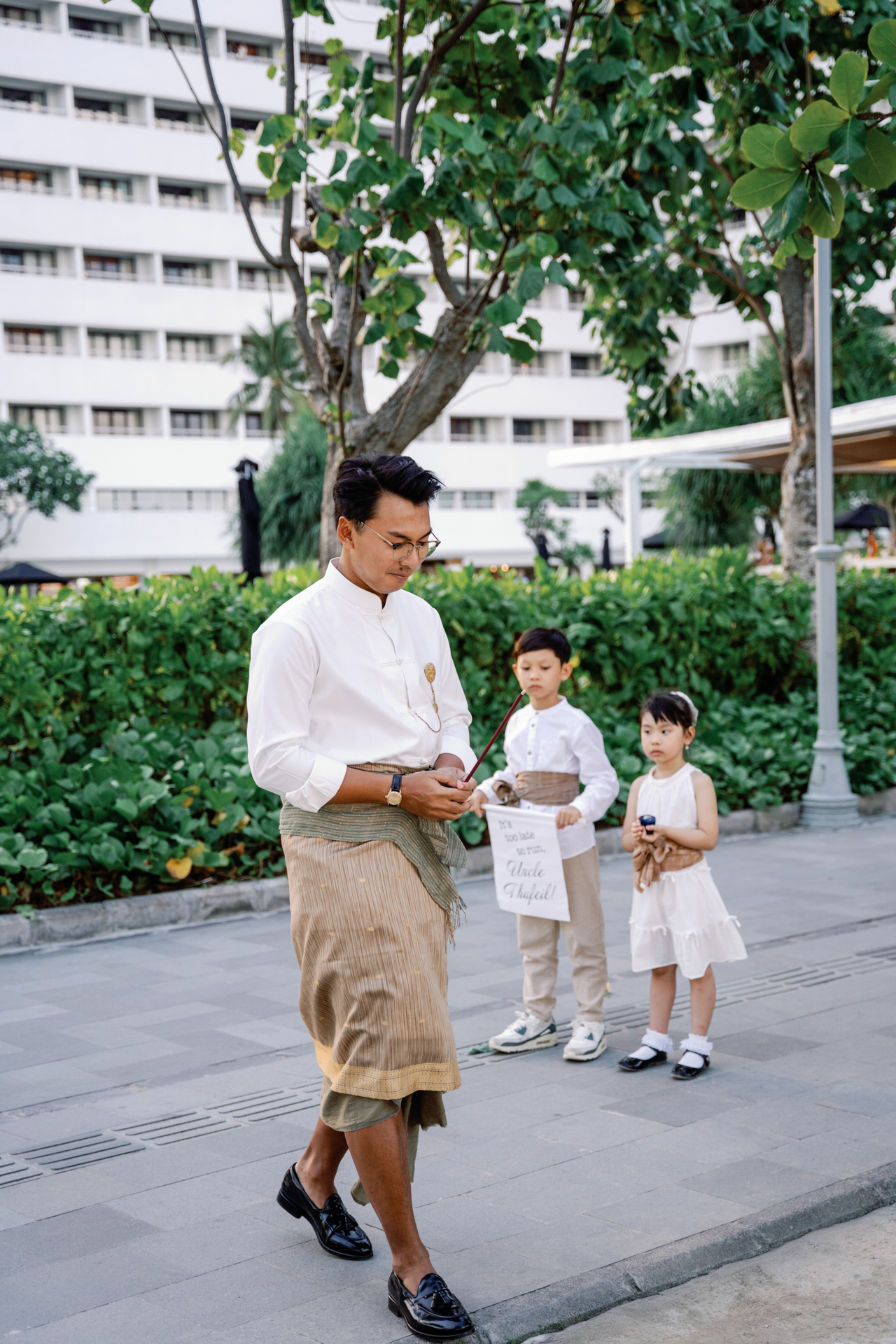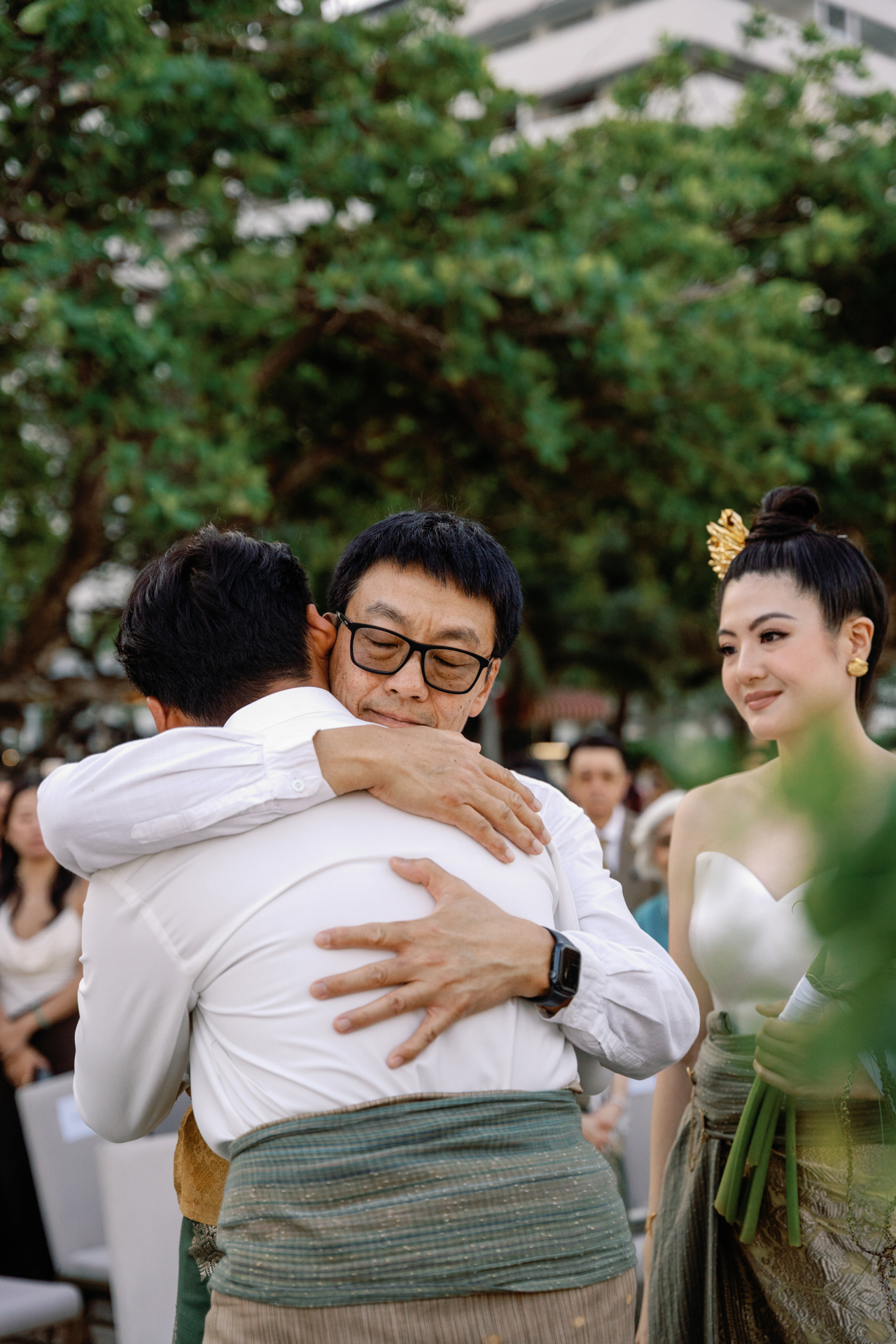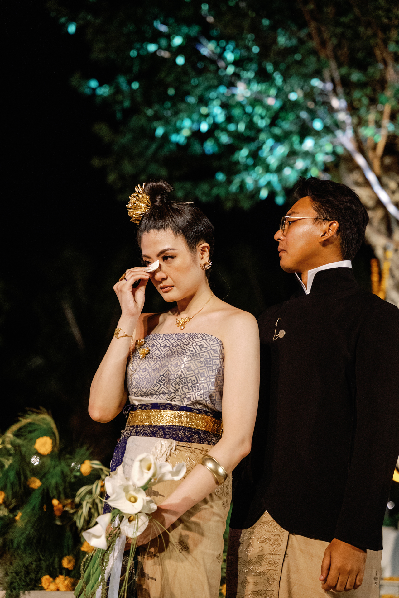 Their union was marked by a deeply symbolic Buddhist wedding ceremony, where every ritual was performed with intention and mindfulness. Guided by a monk and witnessed by their closest family and friends, the ceremony unfolded with offerings, prayers, and quiet moments of reflection. With the ocean just steps away, the natural rhythm of the beachfront setting soft sea air, open skies, and surrounding greenery the sense of peace throughout the ceremony.