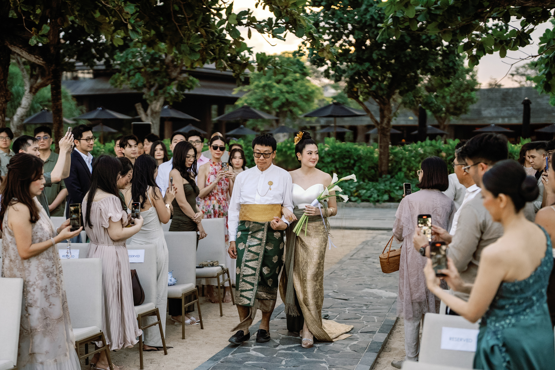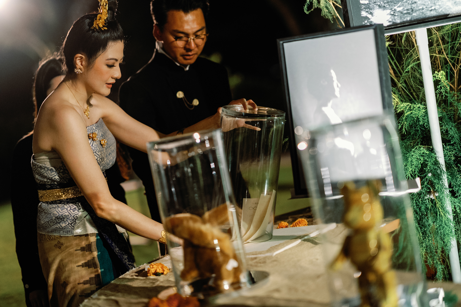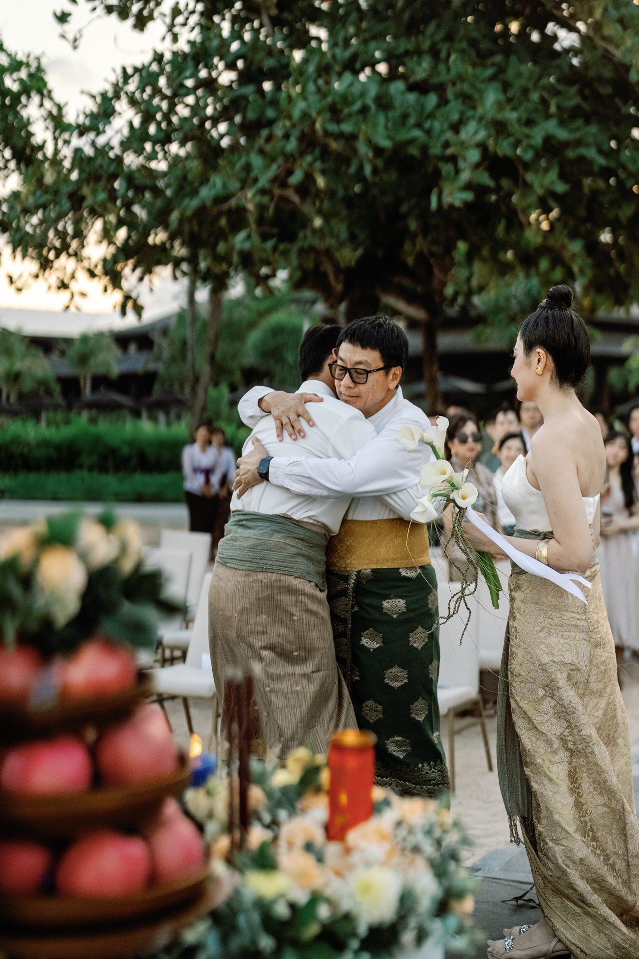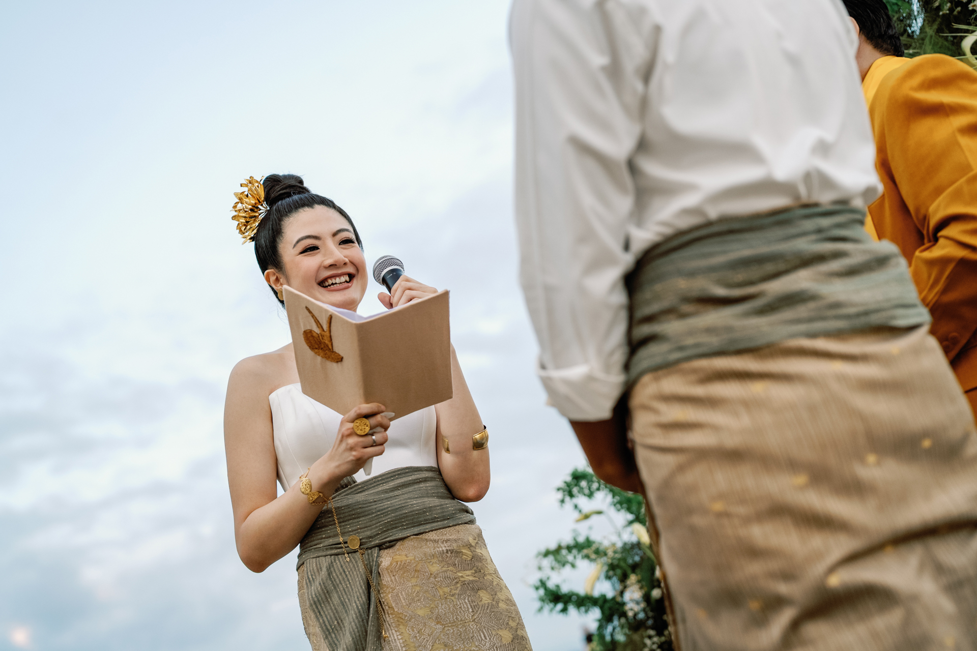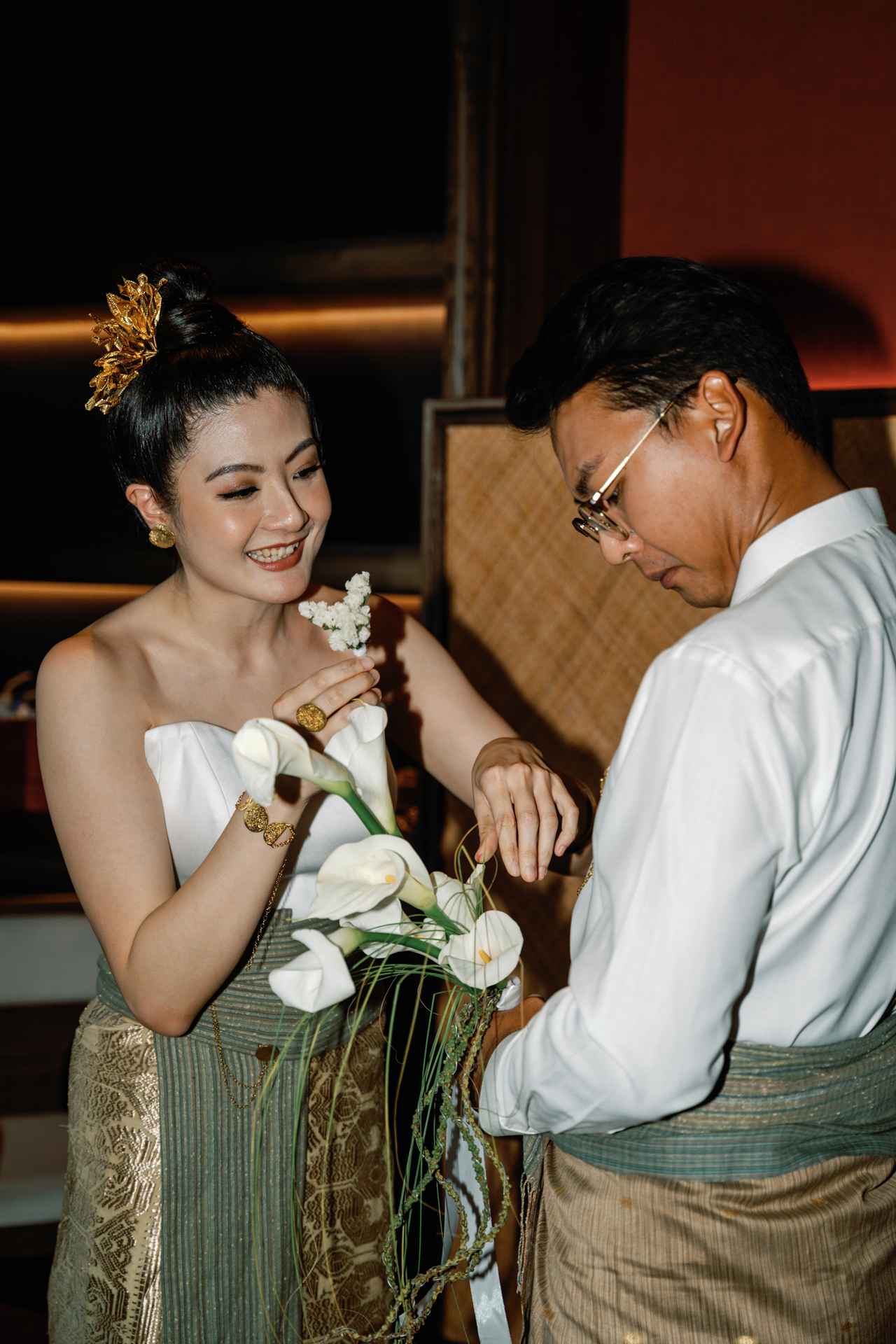 Their union was marked by a deeply symbolic Buddhist wedding ceremony, where every ritual was performed with intention and mindfulness. Guided by a monk and witnessed by their closest family and friends, the ceremony unfolded with offerings, prayers, and quiet moments of reflection. With the ocean just steps away, the natural rhythm of the beachfront setting soft sea air, open skies, and surrounding greenery the sense of peace throughout the ceremony.