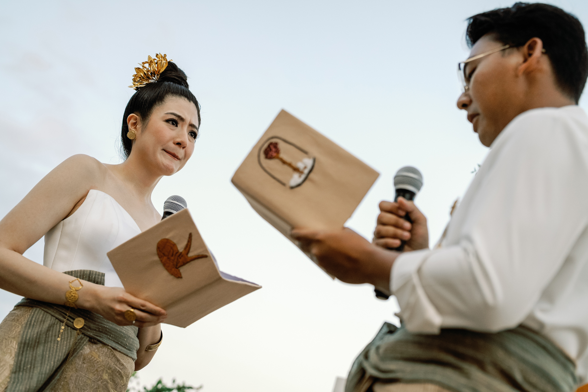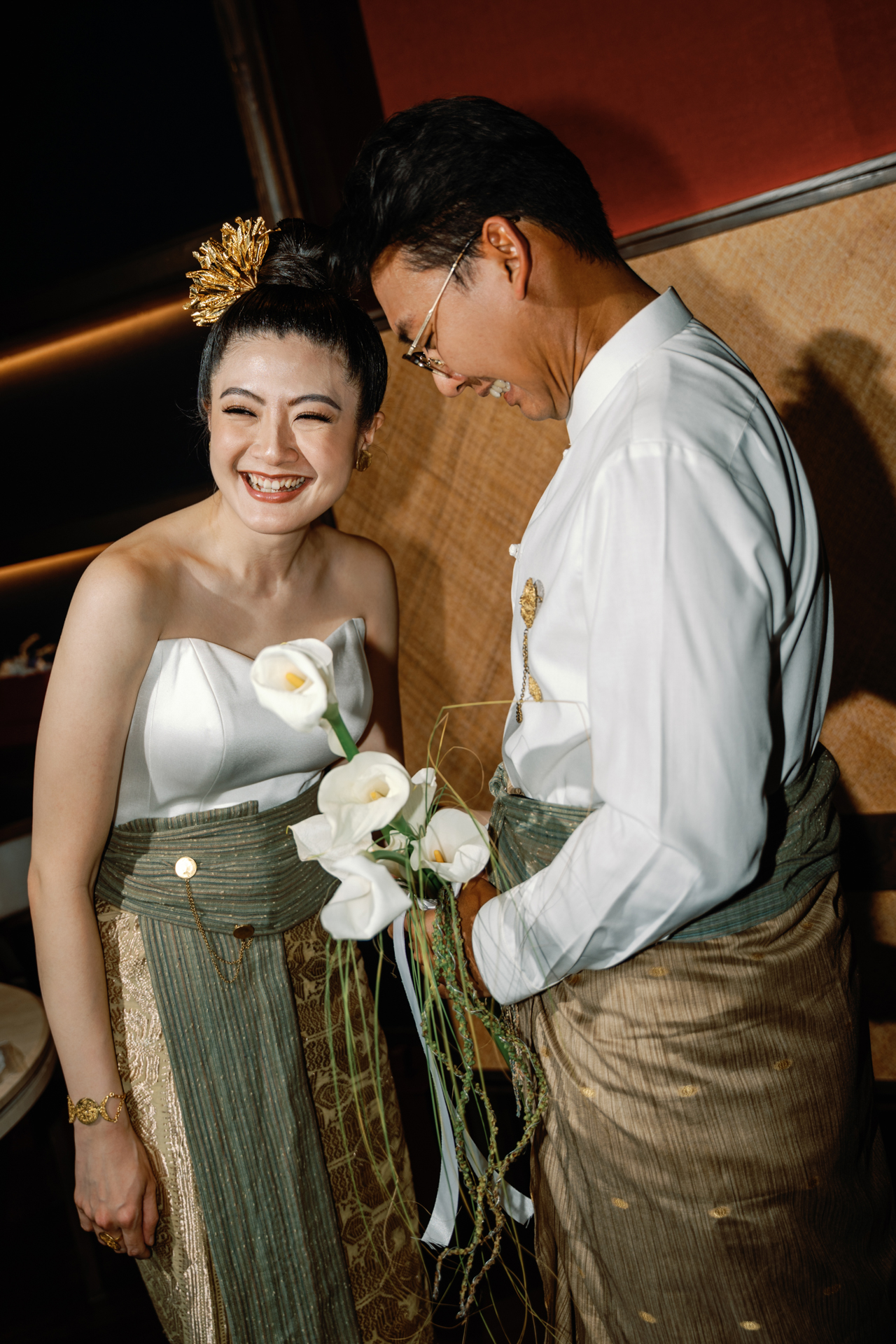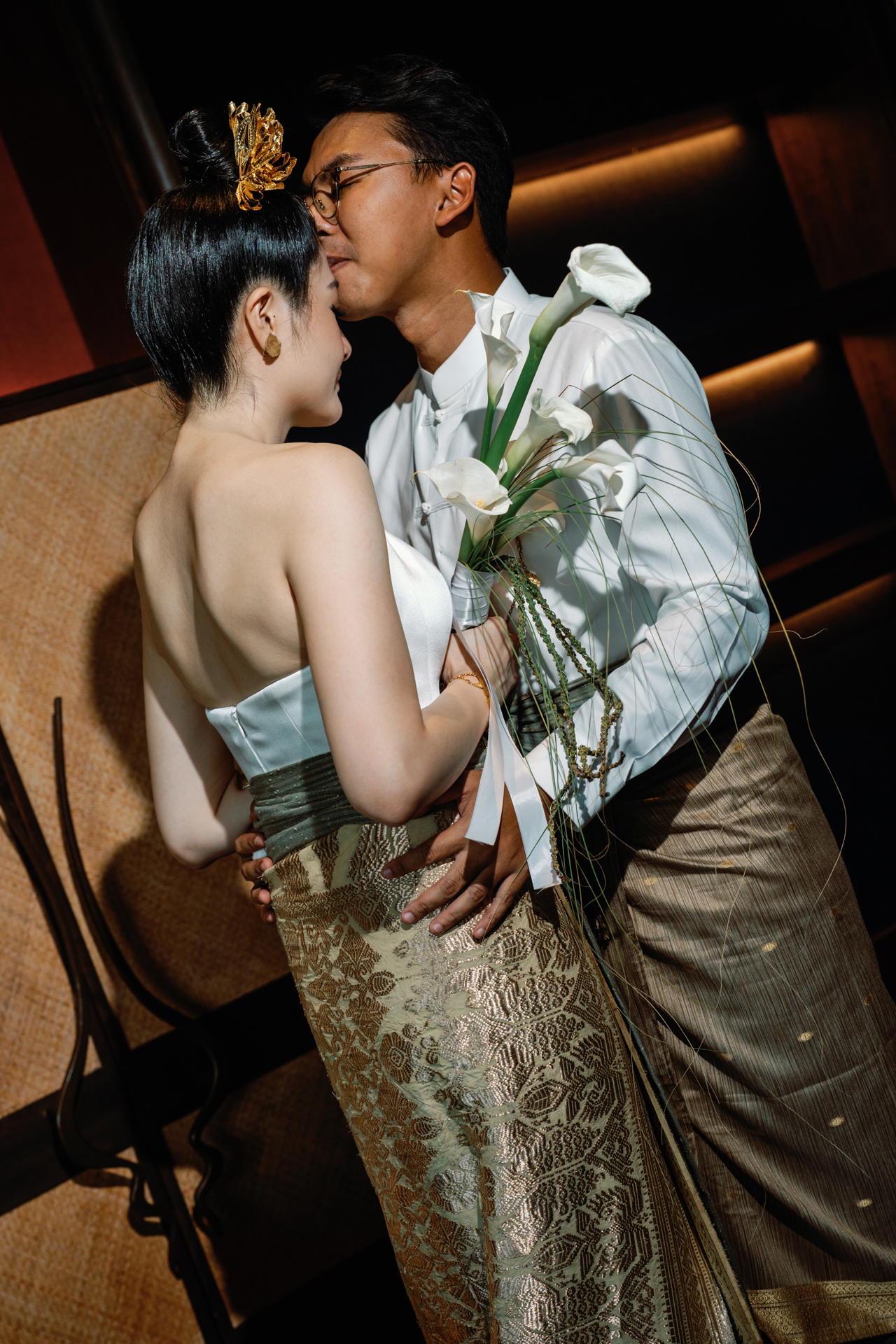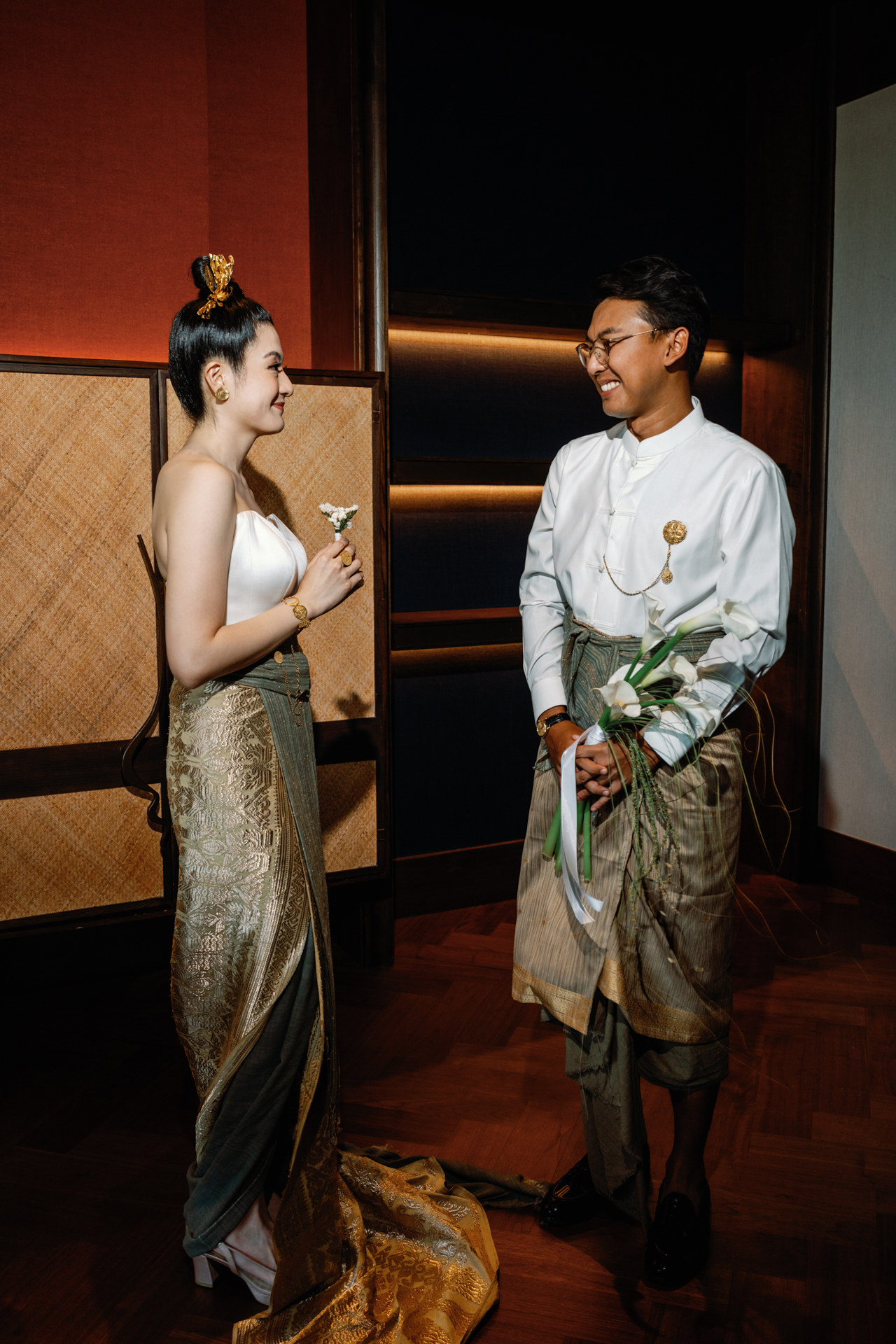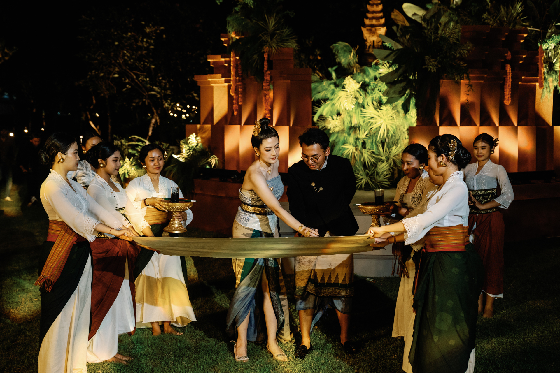 Their union was marked by a deeply symbolic Buddhist wedding ceremony, where every ritual was performed with intention and mindfulness. Guided by a monk and witnessed by their closest family and friends, the ceremony unfolded with offerings, prayers, and quiet moments of reflection. With the ocean just steps away, the natural rhythm of the beachfront setting soft sea air, open skies, and surrounding greenery the sense of peace throughout the ceremony.