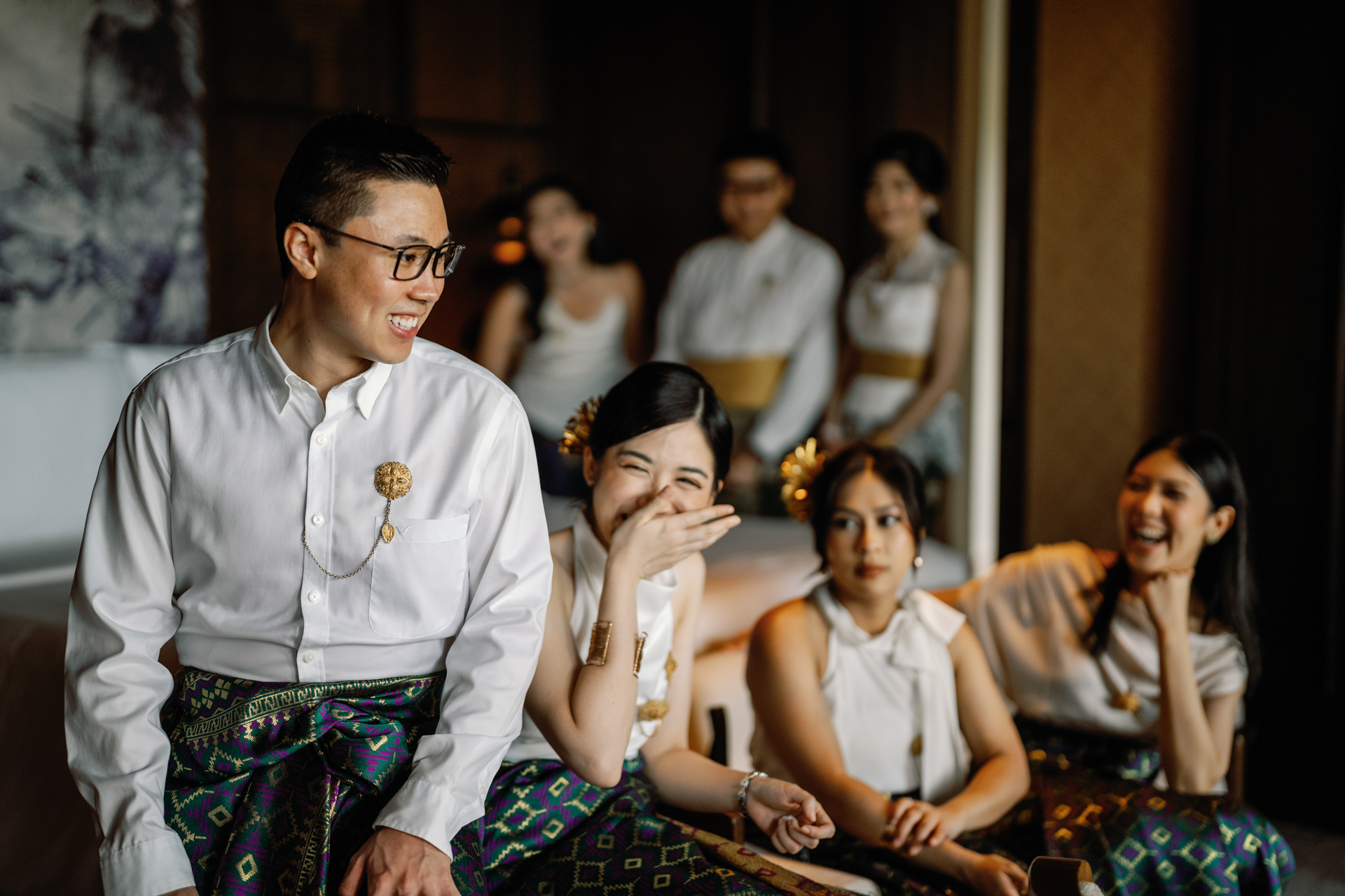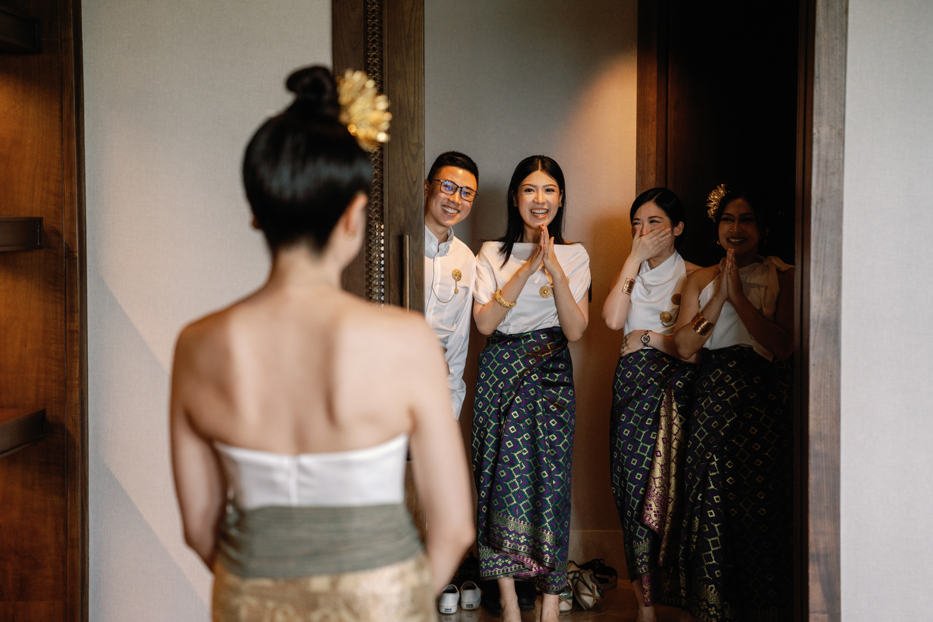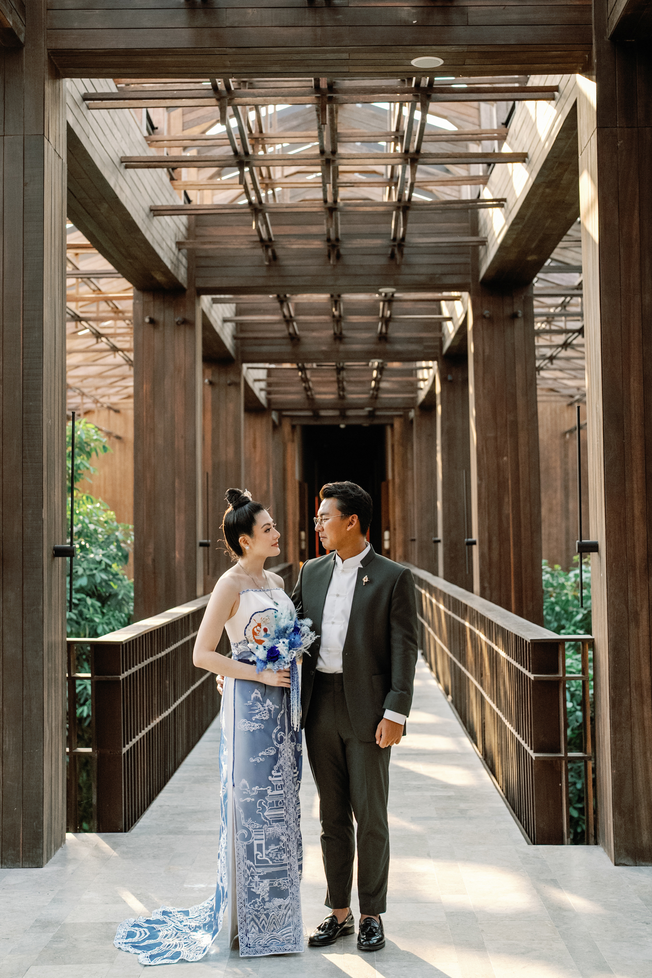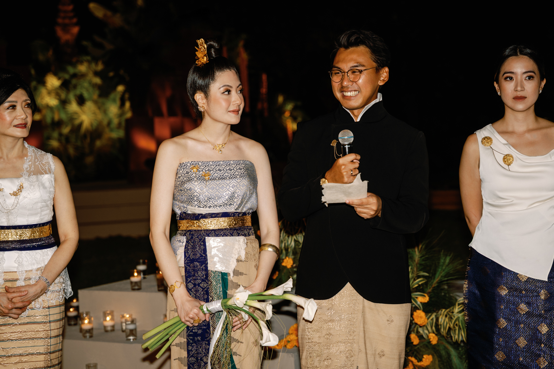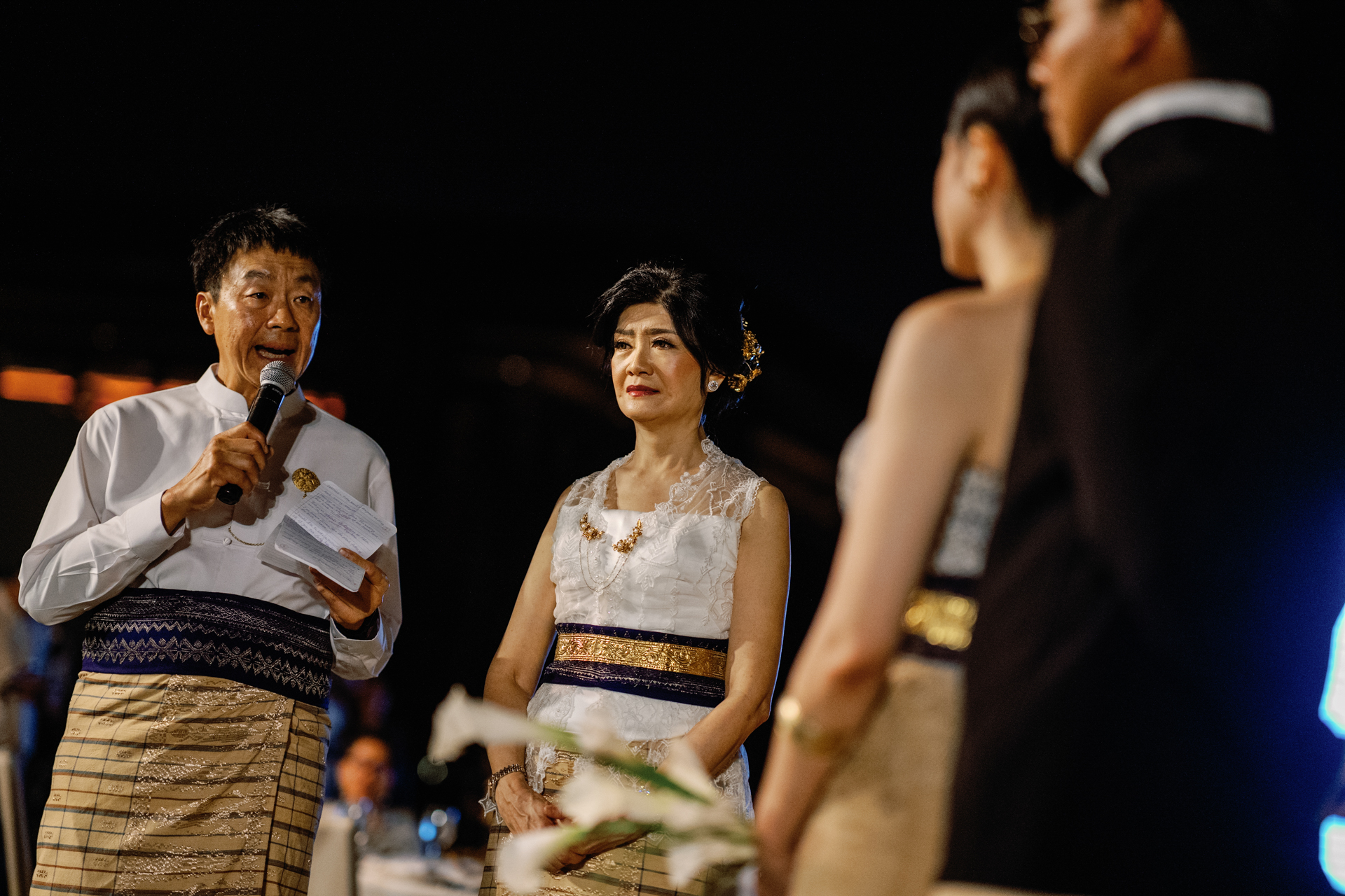 Their union was marked by a deeply symbolic Buddhist wedding ceremony, where every ritual was performed with intention and mindfulness. Guided by a monk and witnessed by their closest family and friends, the ceremony unfolded with offerings, prayers, and quiet moments of reflection. With the ocean just steps away, the natural rhythm of the beachfront setting soft sea air, open skies, and surrounding greenery the sense of peace throughout the ceremony.
