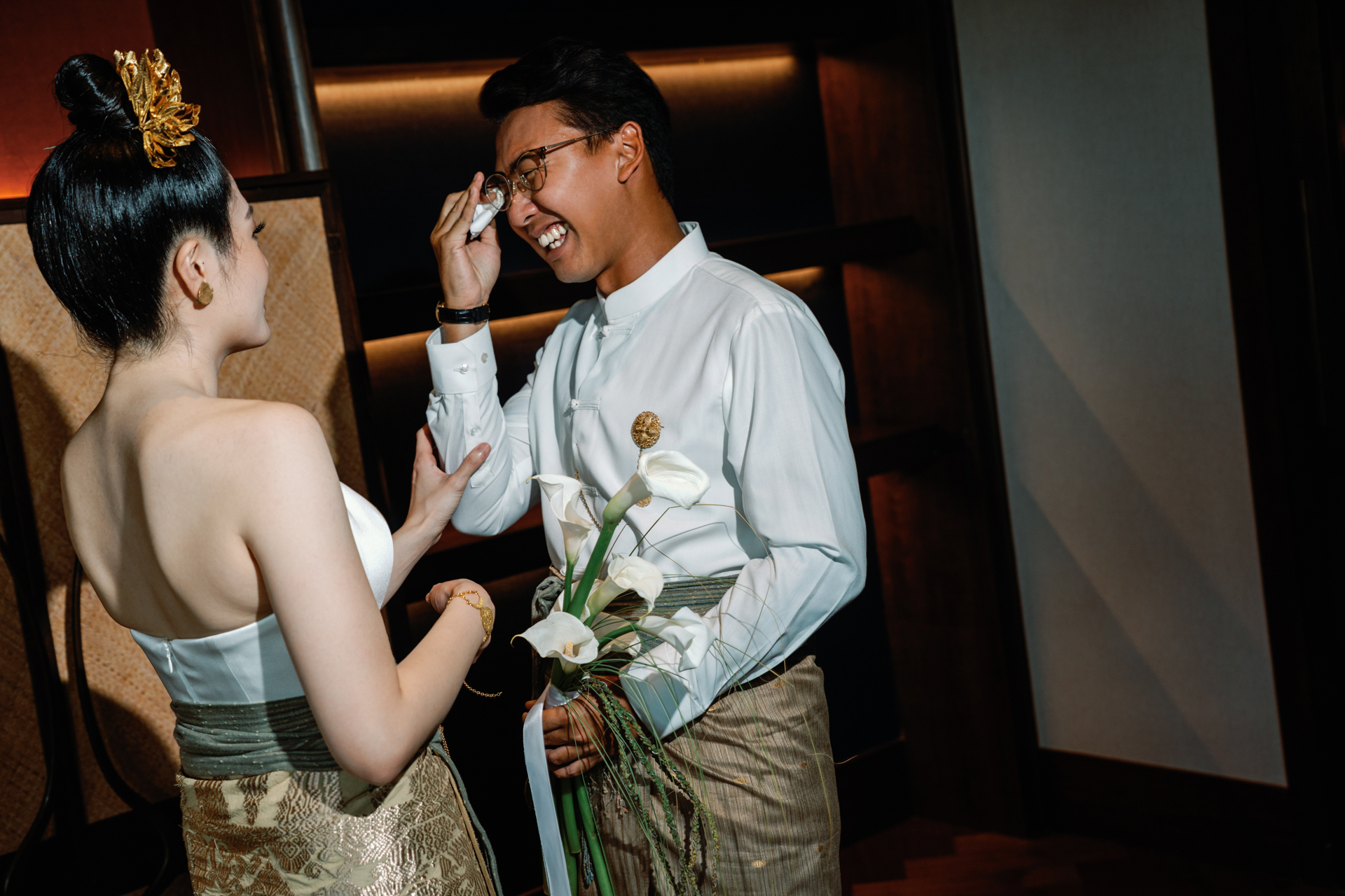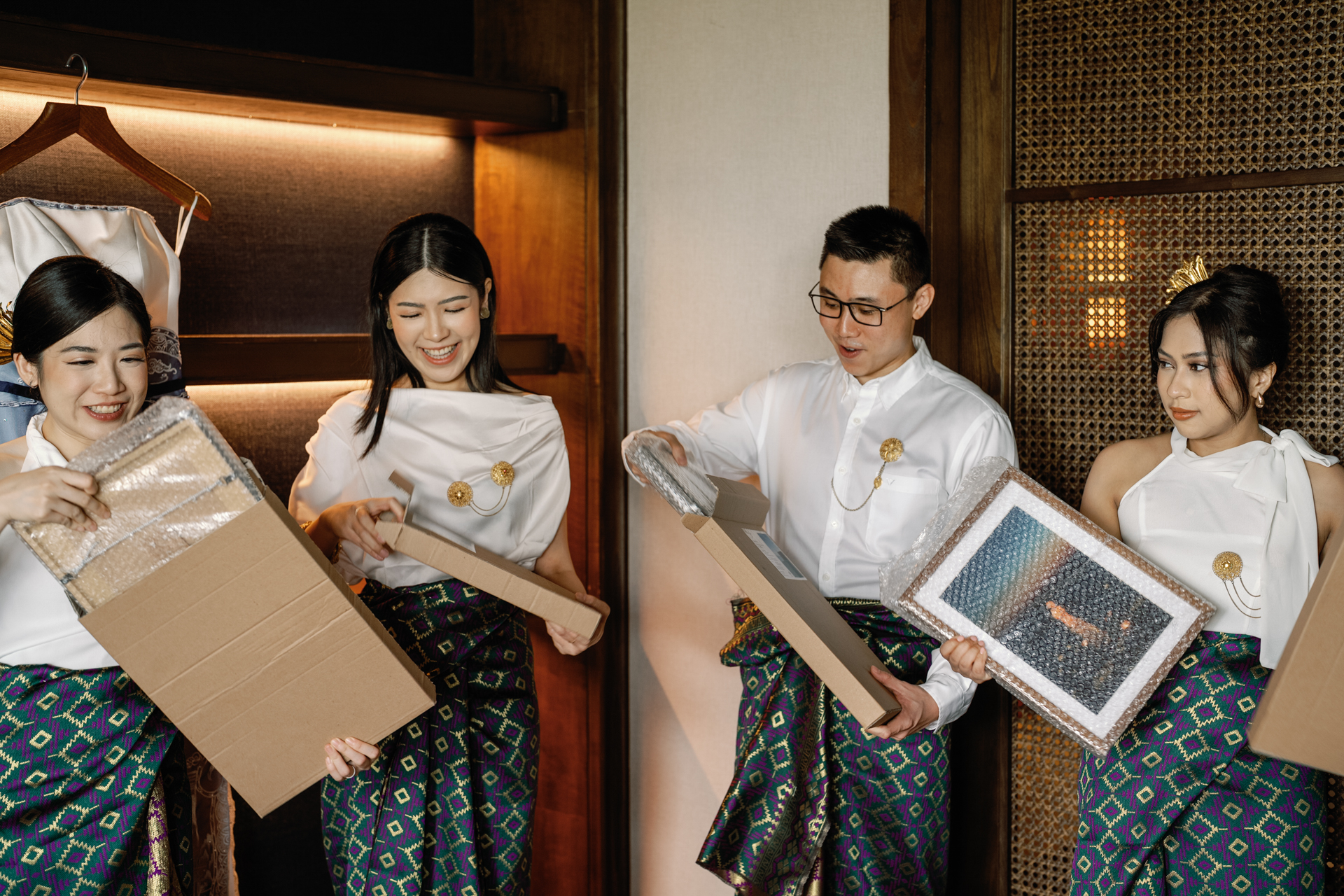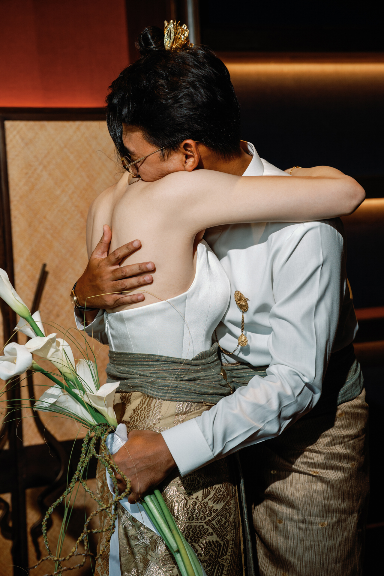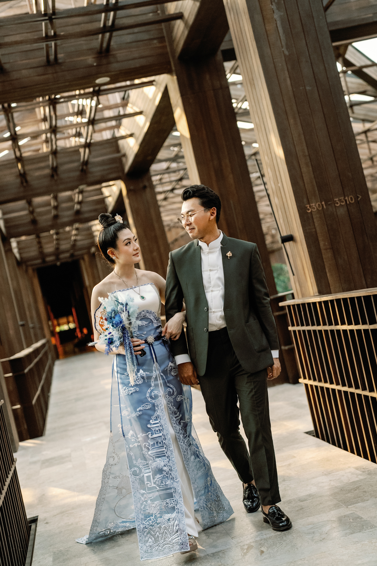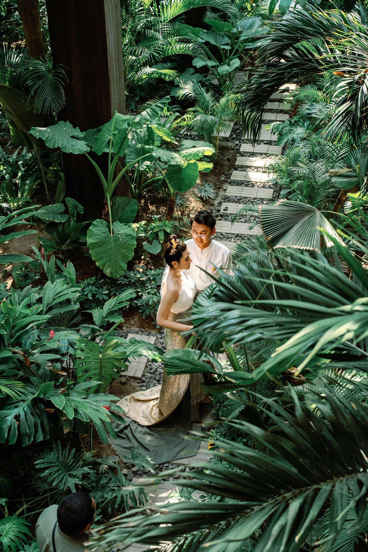 Their union was marked by a deeply symbolic Buddhist wedding ceremony, where every ritual was performed with intention and mindfulness. Guided by a monk and witnessed by their closest family and friends, the ceremony unfolded with offerings, prayers, and quiet moments of reflection. With the ocean just steps away, the natural rhythm of the beachfront setting soft sea air, open skies, and surrounding greenery the sense of peace throughout the ceremony.