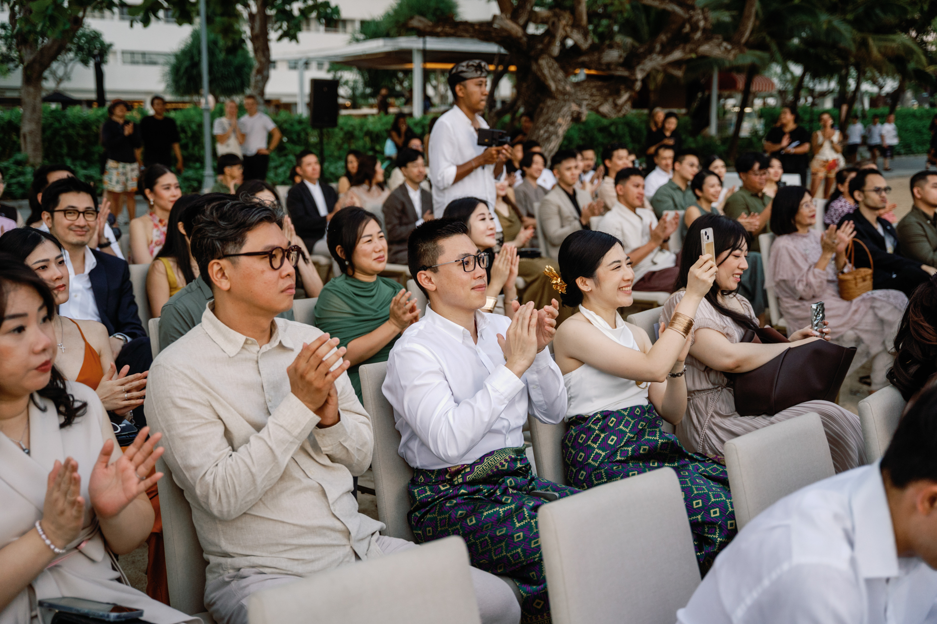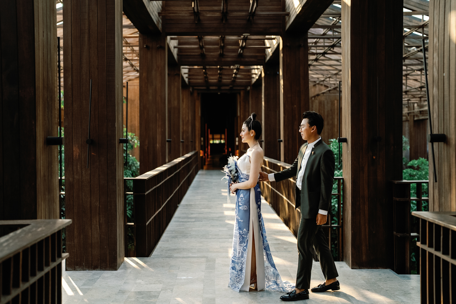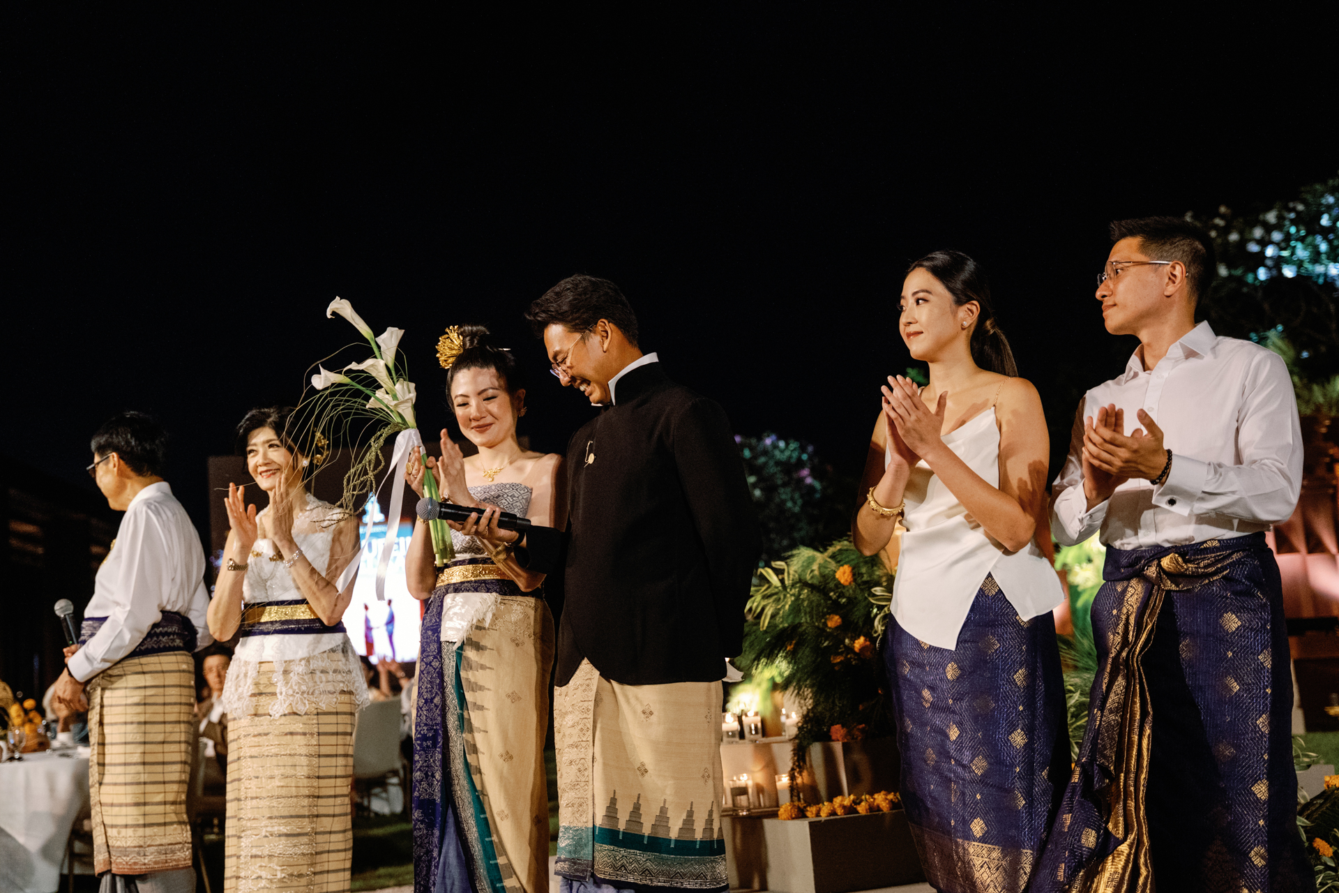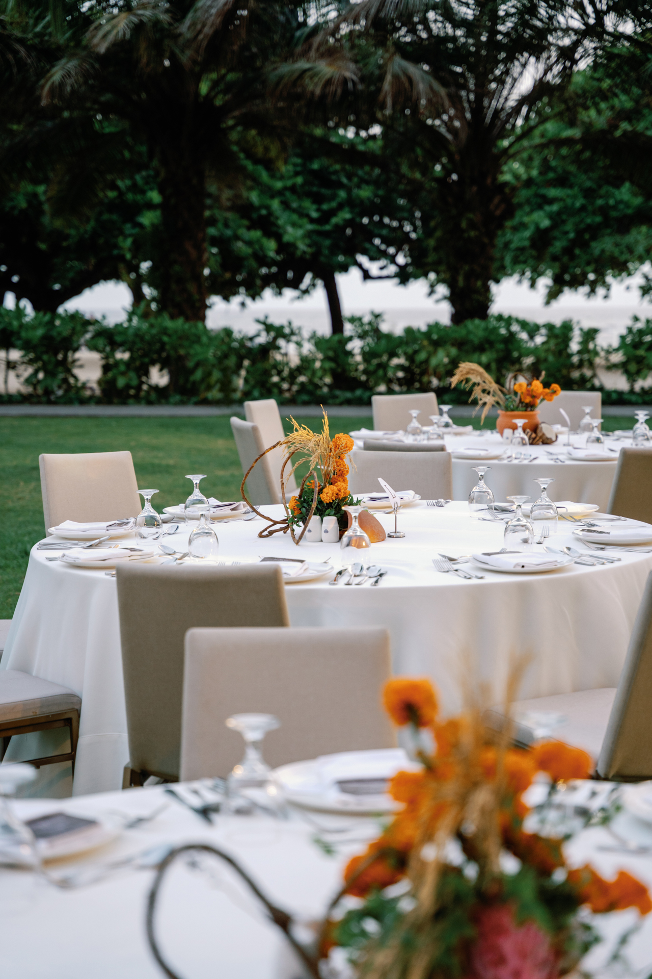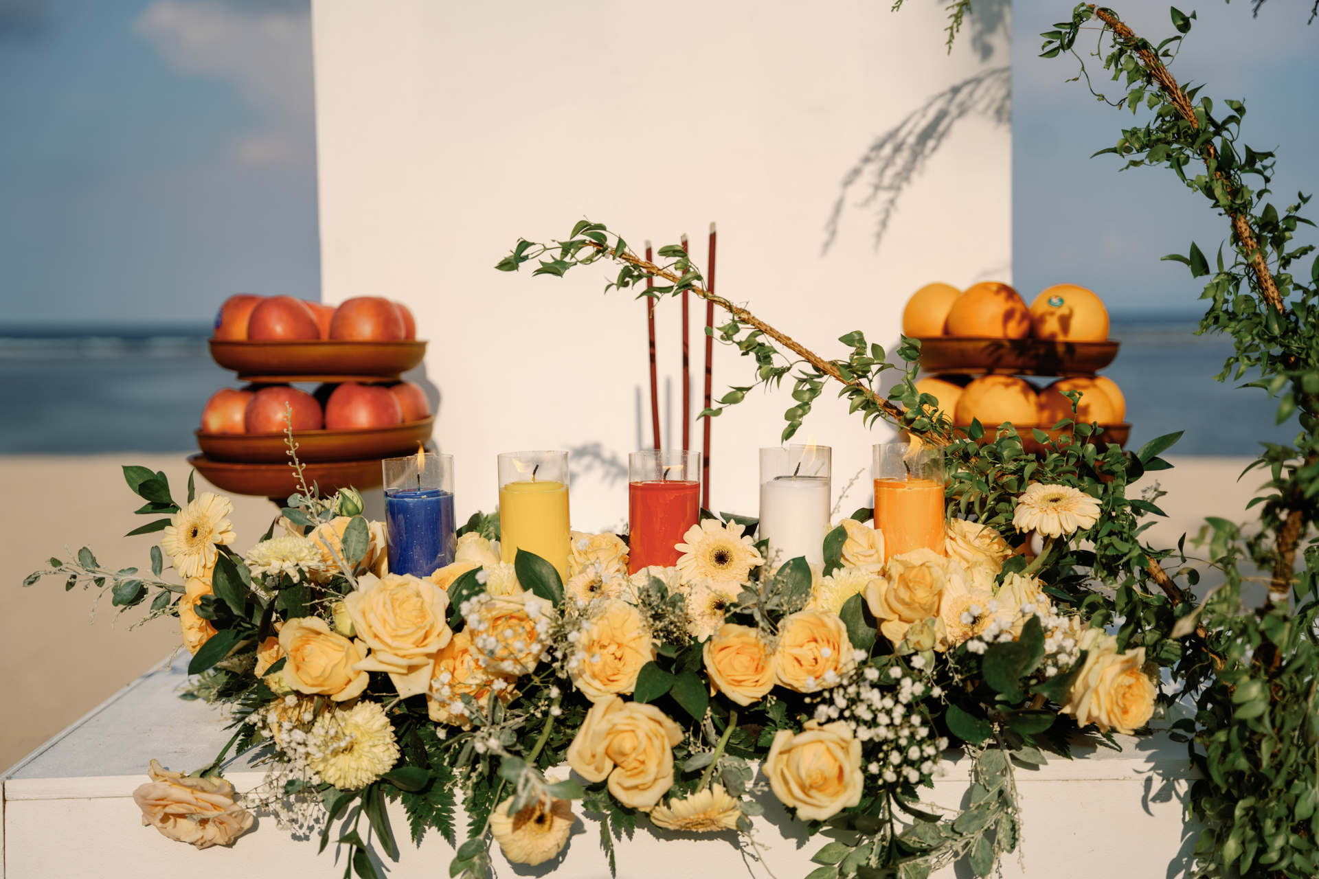 Their union was marked by a deeply symbolic Buddhist wedding ceremony, where every ritual was performed with intention and mindfulness. Guided by a monk and witnessed by their closest family and friends, the ceremony unfolded with offerings, prayers, and quiet moments of reflection. With the ocean just steps away, the natural rhythm of the beachfront setting soft sea air, open skies, and surrounding greenery the sense of peace throughout the ceremony.