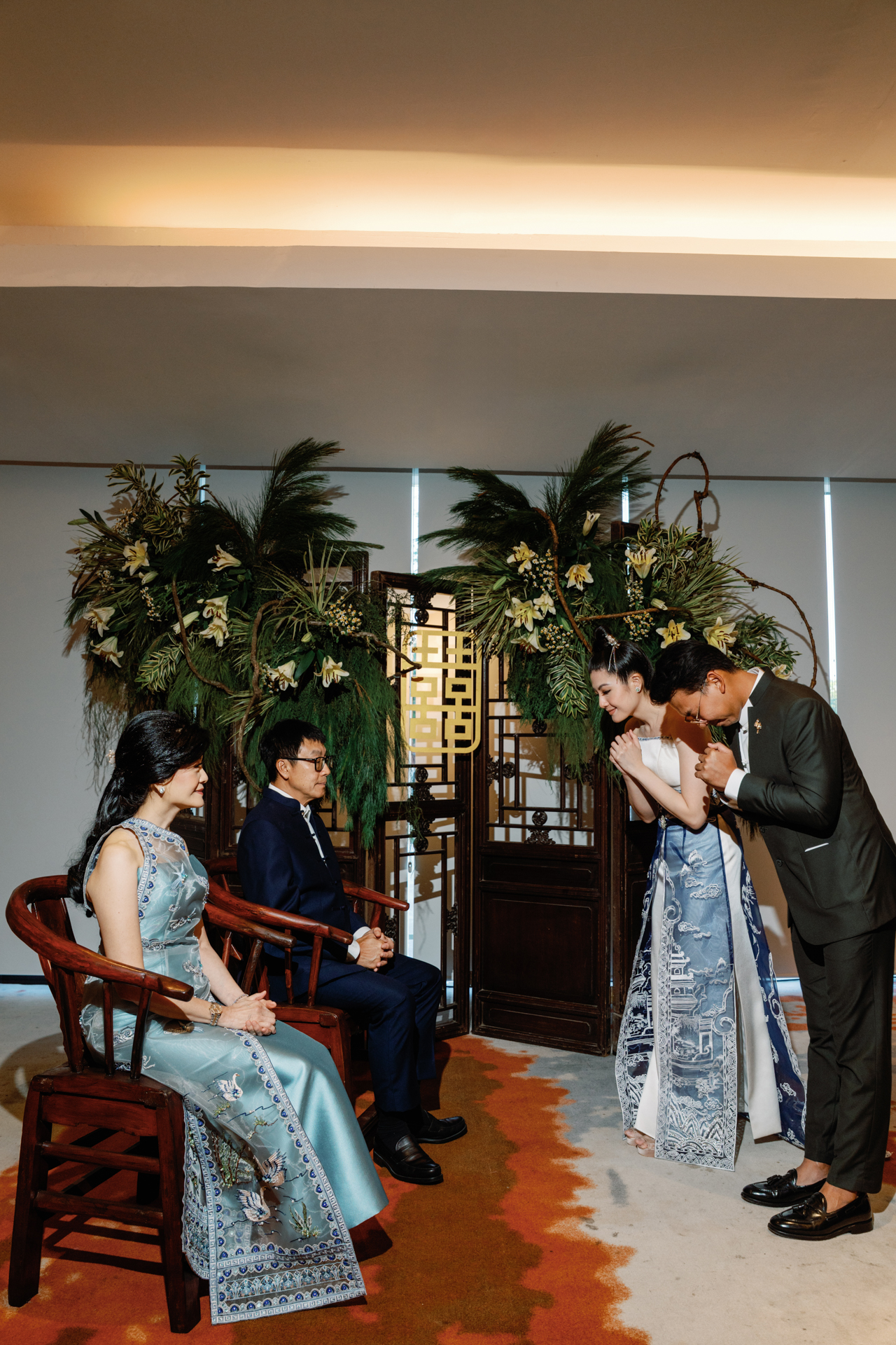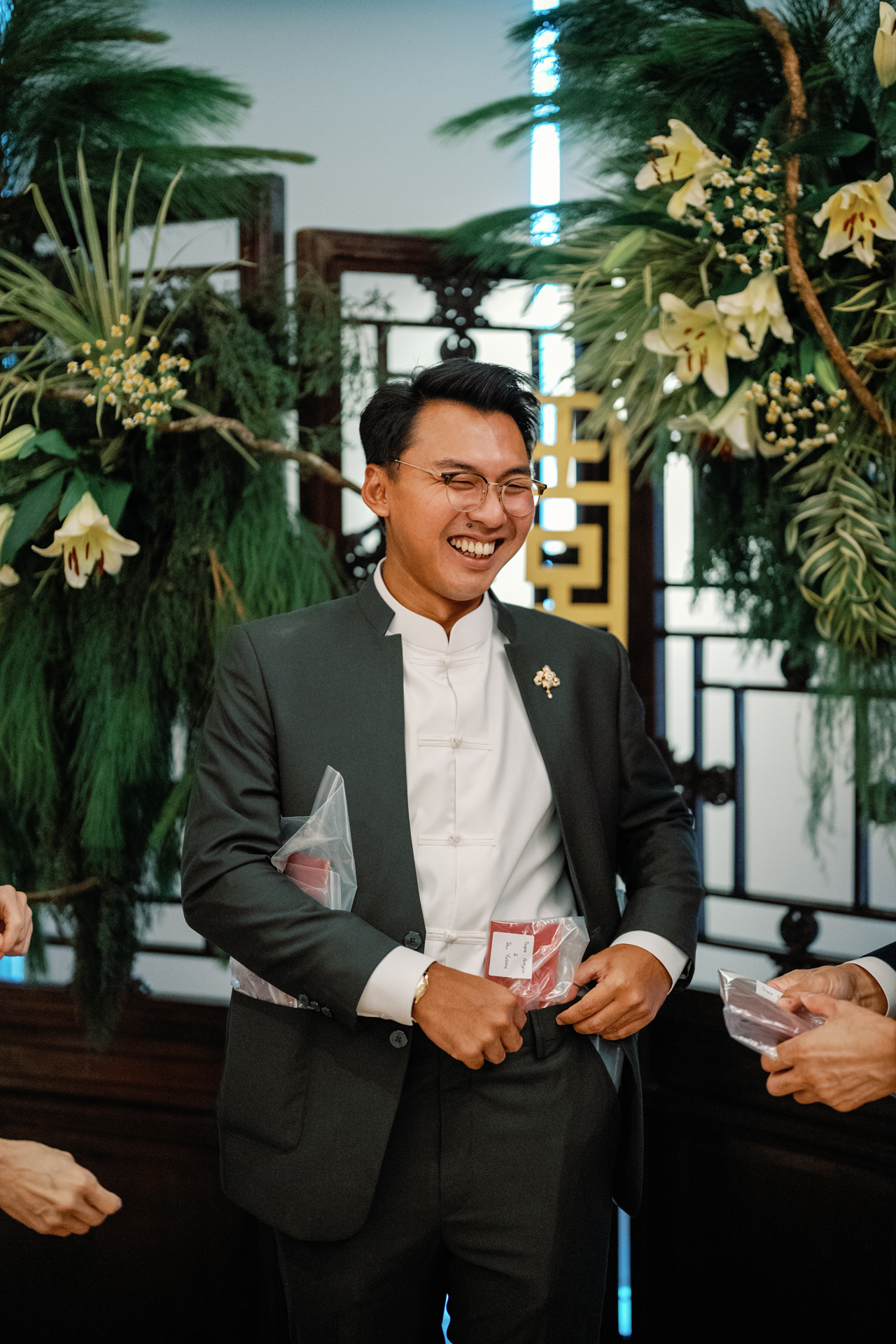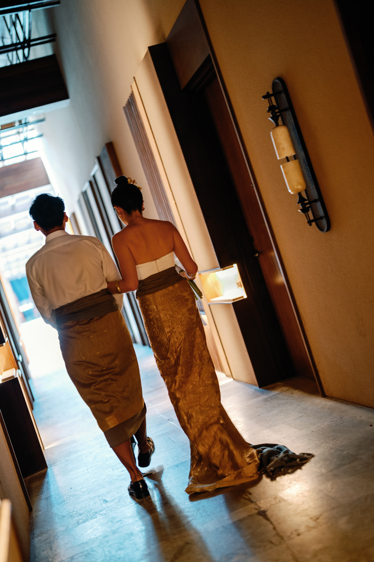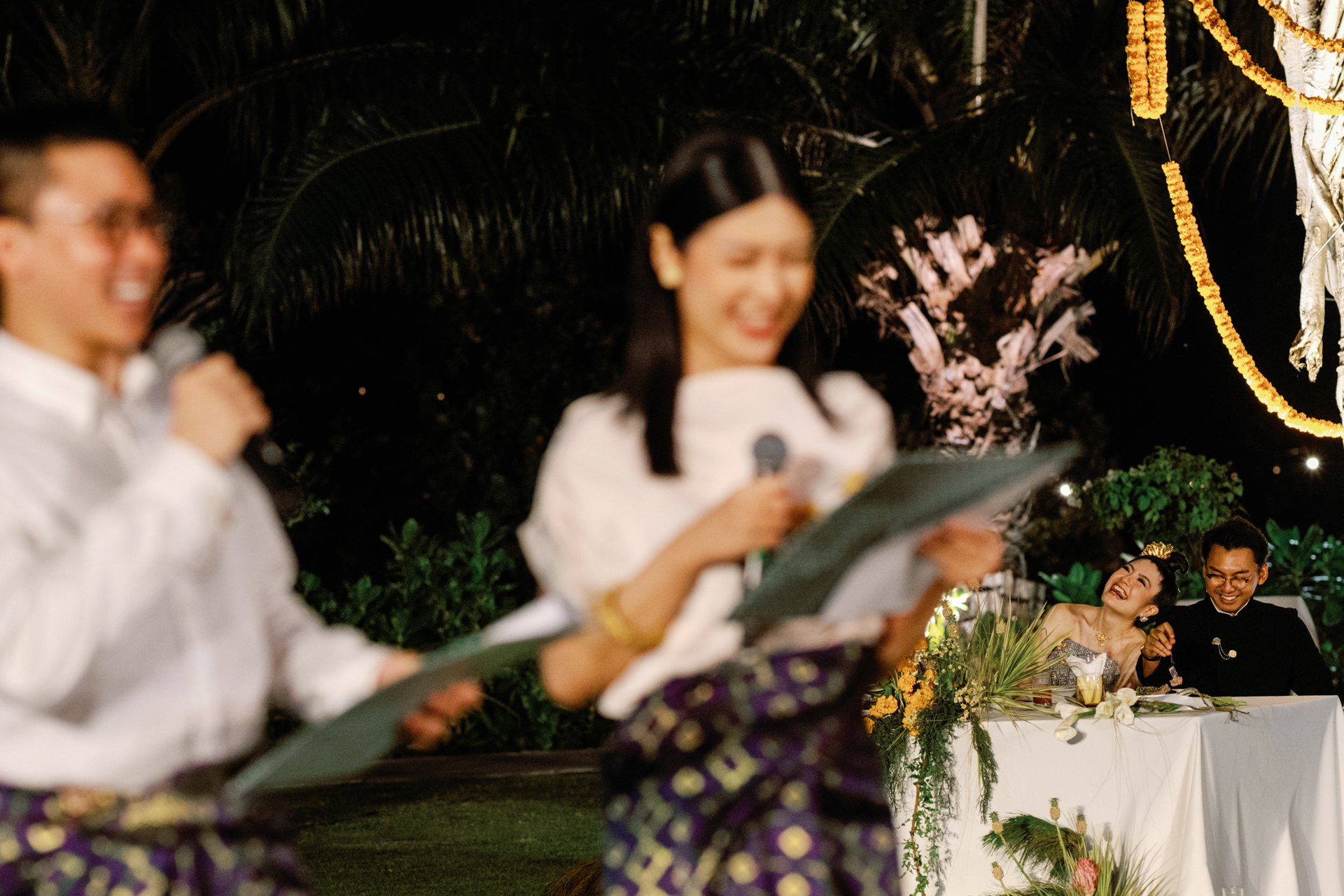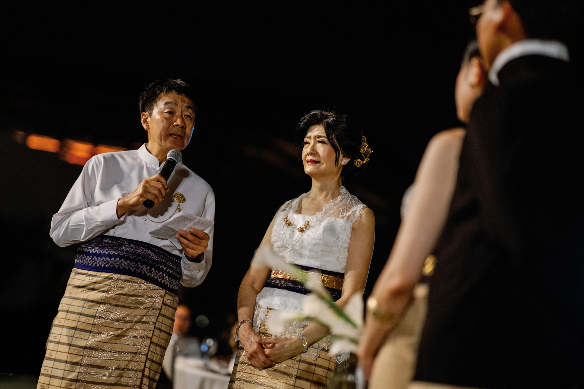 Their union was marked by a deeply symbolic Buddhist wedding ceremony, where every ritual was performed with intention and mindfulness. Guided by a monk and witnessed by their closest family and friends, the ceremony unfolded with offerings, prayers, and quiet moments of reflection. With the ocean just steps away, the natural rhythm of the beachfront setting soft sea air, open skies, and surrounding greenery the sense of peace throughout the ceremony.