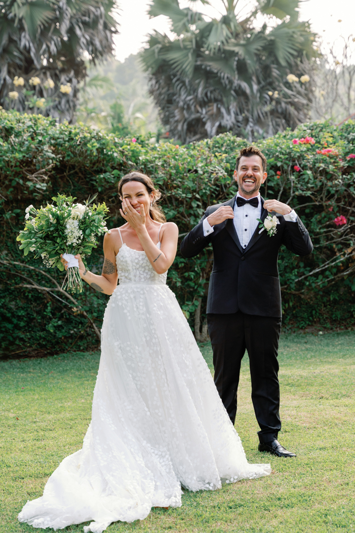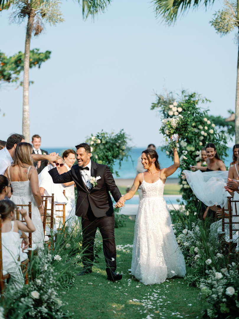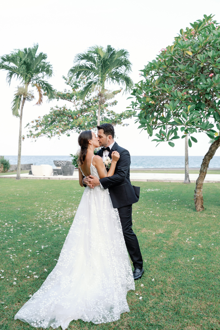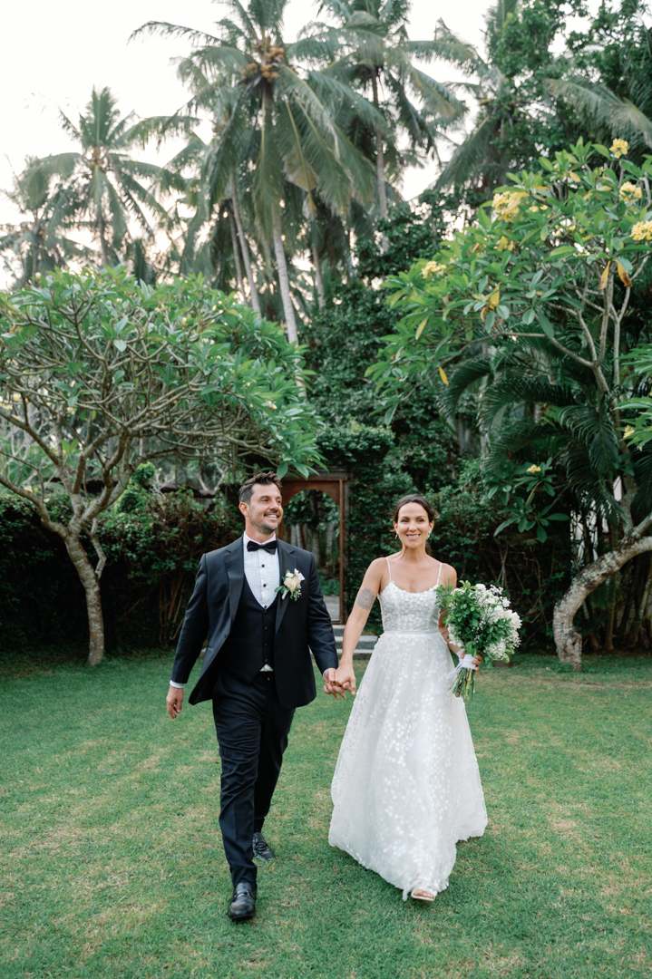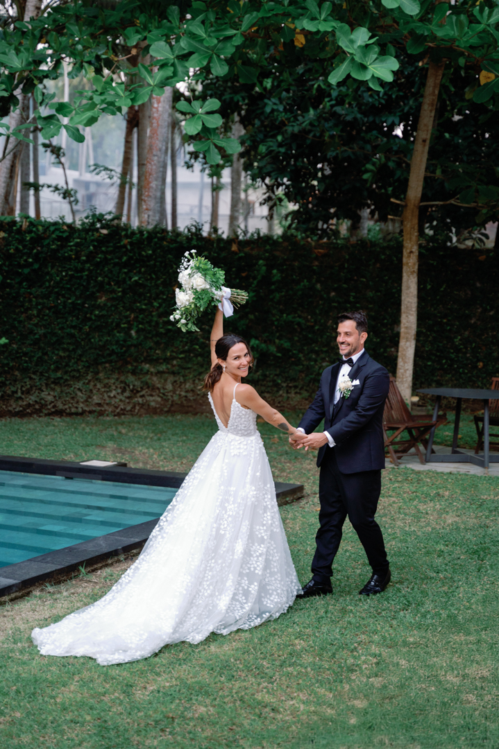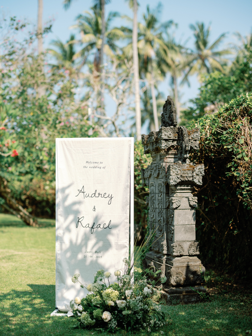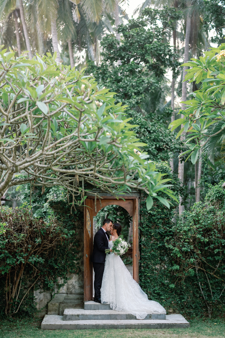 Rafael & Audrey chose to celebrate their wedding in Bali with a minimalist garden setup, surrounded only by their closest family and friends. With a limited guest list, every moment felt warm, personal, and genuine. The lush greenery created a naturally romantic backdrop, while the simple décor highlighted the couple’s love without distraction.