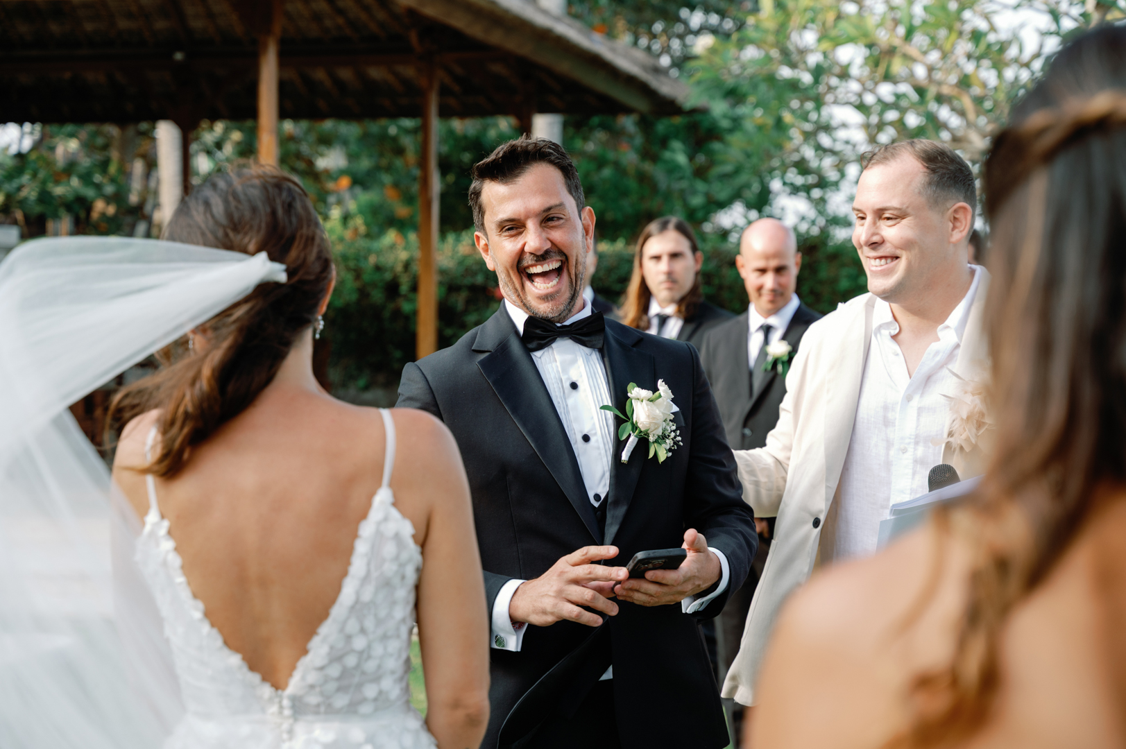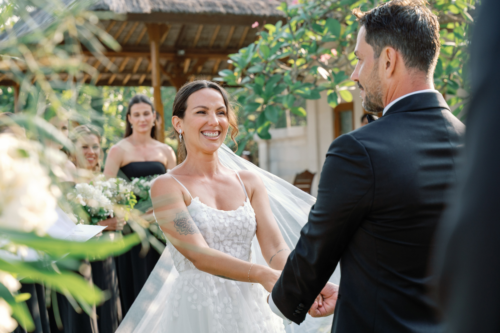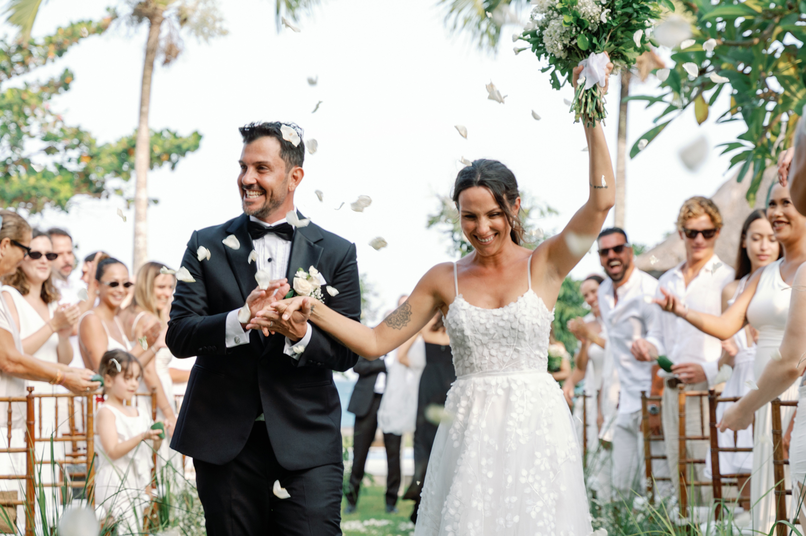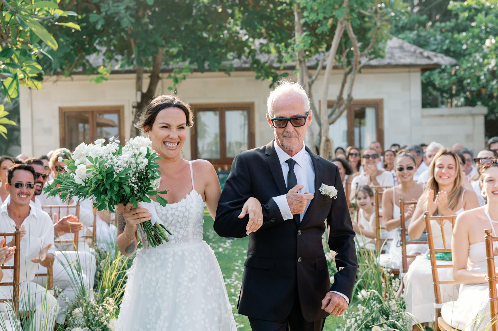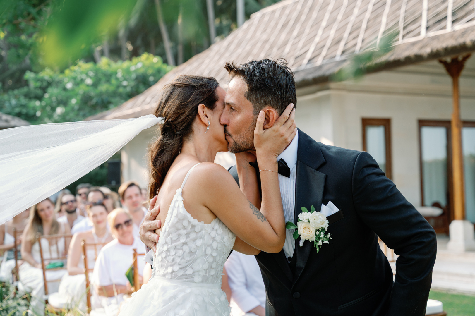 Rafael & Audrey chose to celebrate their wedding in Bali with a minimalist garden setup, surrounded only by their closest family and friends. With a limited guest list, every moment felt warm, personal, and genuine. The lush greenery created a naturally romantic backdrop, while the simple décor highlighted the couple’s love without distraction.