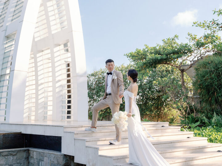 Modern and romantic, Conrad Bali is home to the famous Infinity Chapel, which seems to float on water. The chapel’s sleek design and panoramic views make it a favorite among couples who love contemporary style. In addition to the chapel, the resort offers beachfront gardens and spacious ballrooms, making it a versatile choice for both intimate weddings and larger gatherings. Every shot taken here becomes a masterpiece in Bali wedding photography.